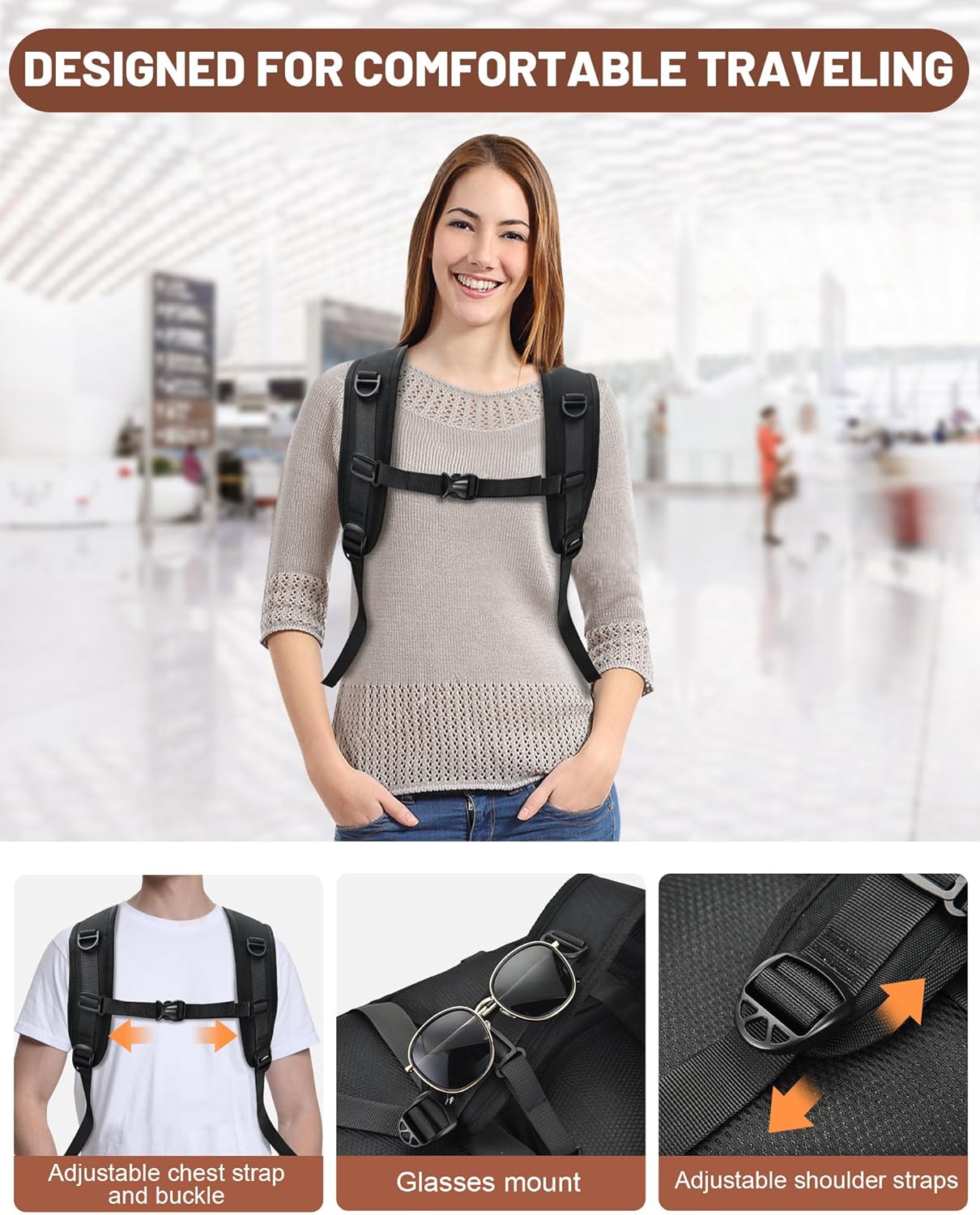 [Anti-theft backpack and suitcase attachment] – Designed for multi-stop journey, this anti-theft backpack for men and women features a again strap for simple attachment to a suitcase deal with. It additionally has a hidden pocket on the again to guard valuables similar to a cell phone, passport or pockets.