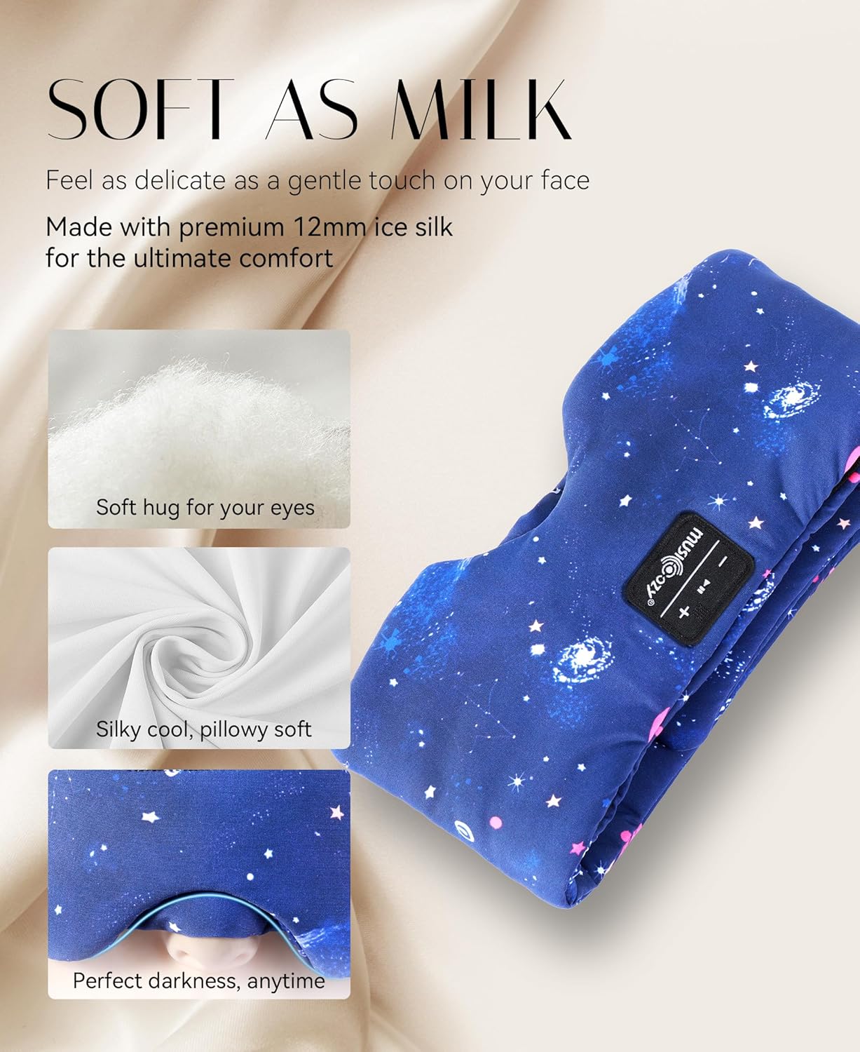 ❄️☀️【Snug 6A Grade Actual Pure Silk】Get pleasure from luxurious sleep expertise with Musicozy 100% silk sleep masks headphones.Crafted from premium pure silk, this sleep masks headphones sleep headphones gives a gentle, clean, and breathable really feel in opposition to your pores and skin.Whether or not you are a frequent traveler, a lightweight sleeper, or just seeking to improve your leisure routine, our silk sleep masks headphones are the proper answer. So why wait? Deal with your self to the final word mixture of luxurious, consolation, and comfort at the moment!