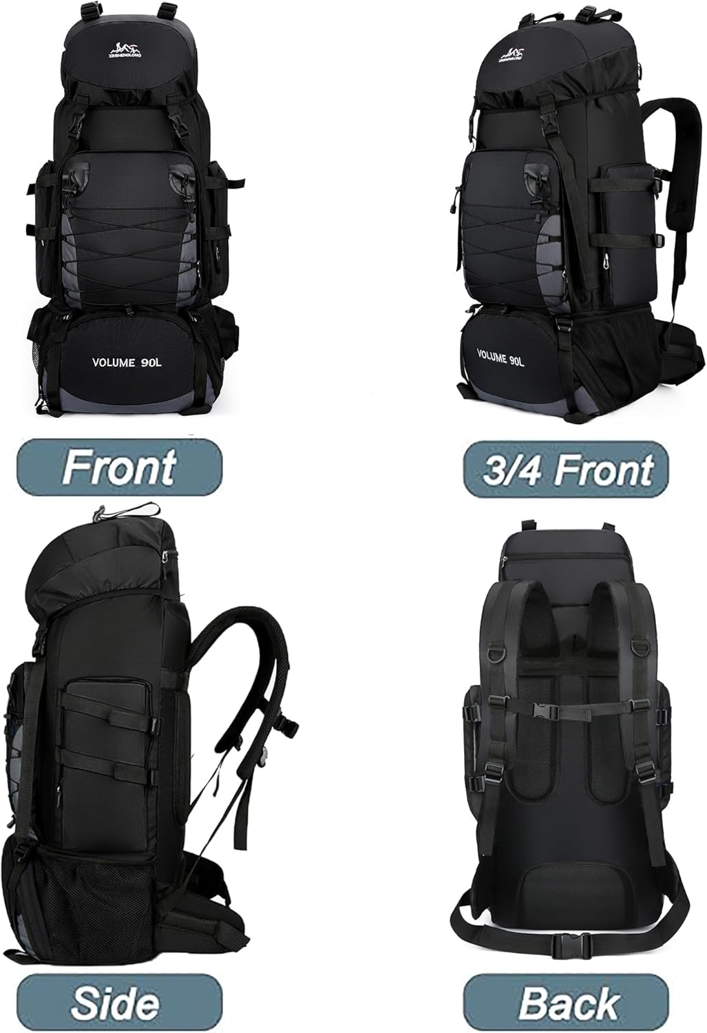 The scale of tenting backsack are 38cm(L) x 26cm(W) x 85cm(H) with a capability of 90 liters.
