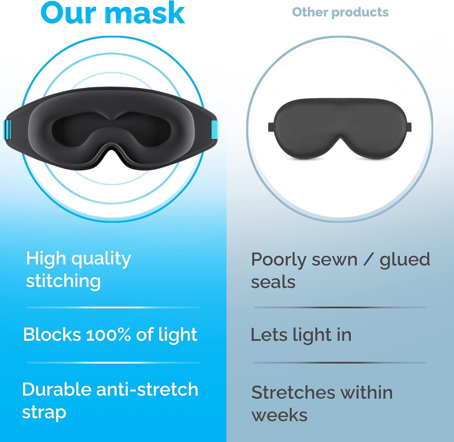 [Better Sleep, Better You]— Mild publicity reduces the standard of your sleep, which may go away you feeling drained and sluggish whenever you get up. That is why we made our sleep masks blackout so you’ll be able to sleep soundly irrespective of the place you’re or what time it’s.