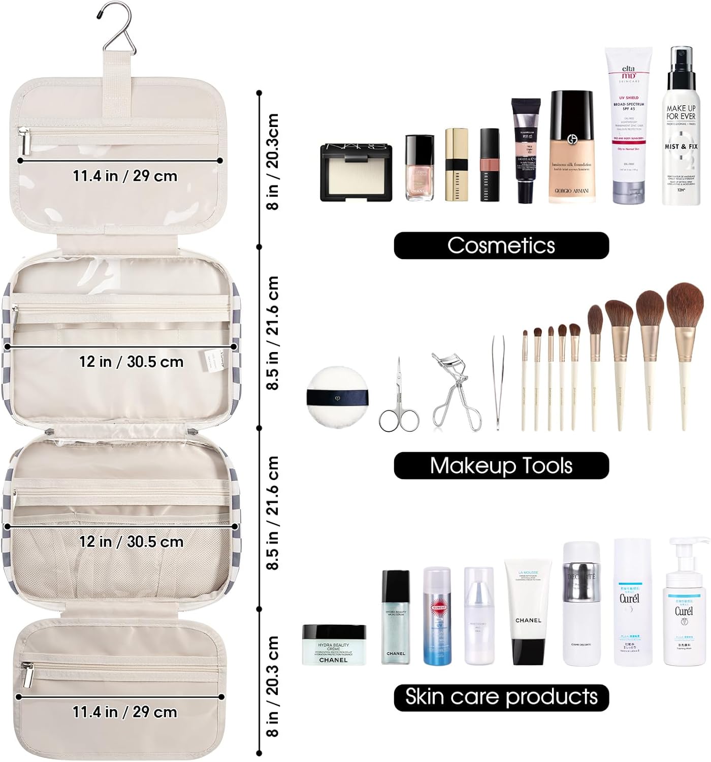 PLENTY of ROOM – Measurement 26×20.3x14cm, simply match full-size toiletries in addition to make-up like shampoo, conditioner, lotion, toothpaste, toothbrushes, hair brush, shaving equipment and some additional gadgets