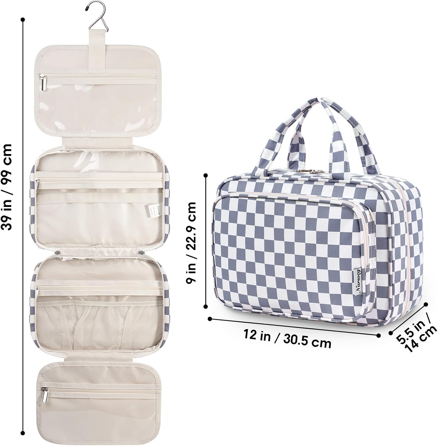 NOT BULKY DESIGN – Massive Capability but compact design, weighing 14 ounces. massive metallic hook permits hanging the toiletry case from towel rack, coat hook or whereever is obtainable, making your toiletries and cosmetics displayed effectively for simple entry