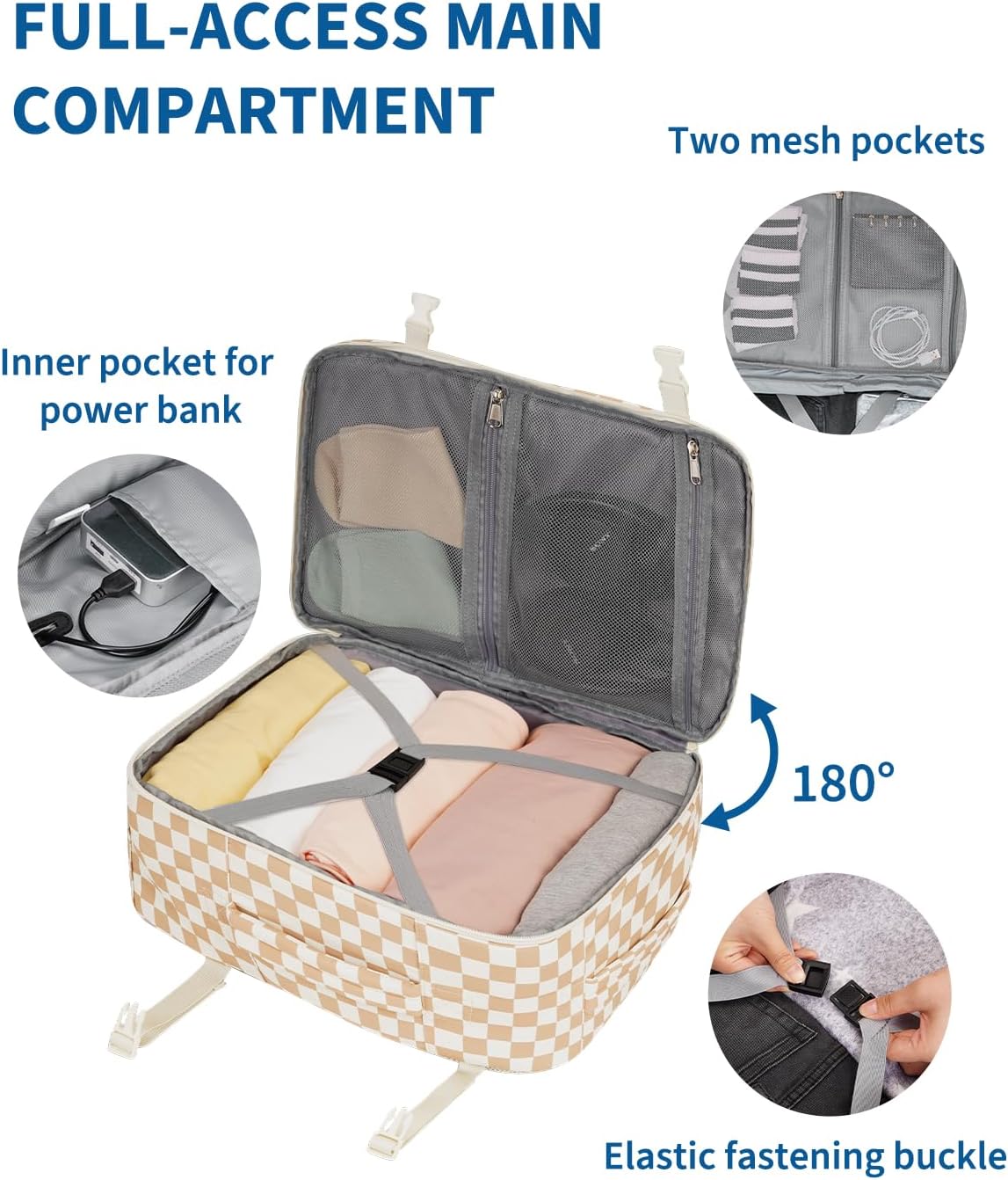 Narwey for Ryanair Cabin Bag 40x20x25 Underseat Carry on Travel Backpack Cabin Size Weekender Overnight Hand Luggage for Women 20L(Light Brown Checkerboard)