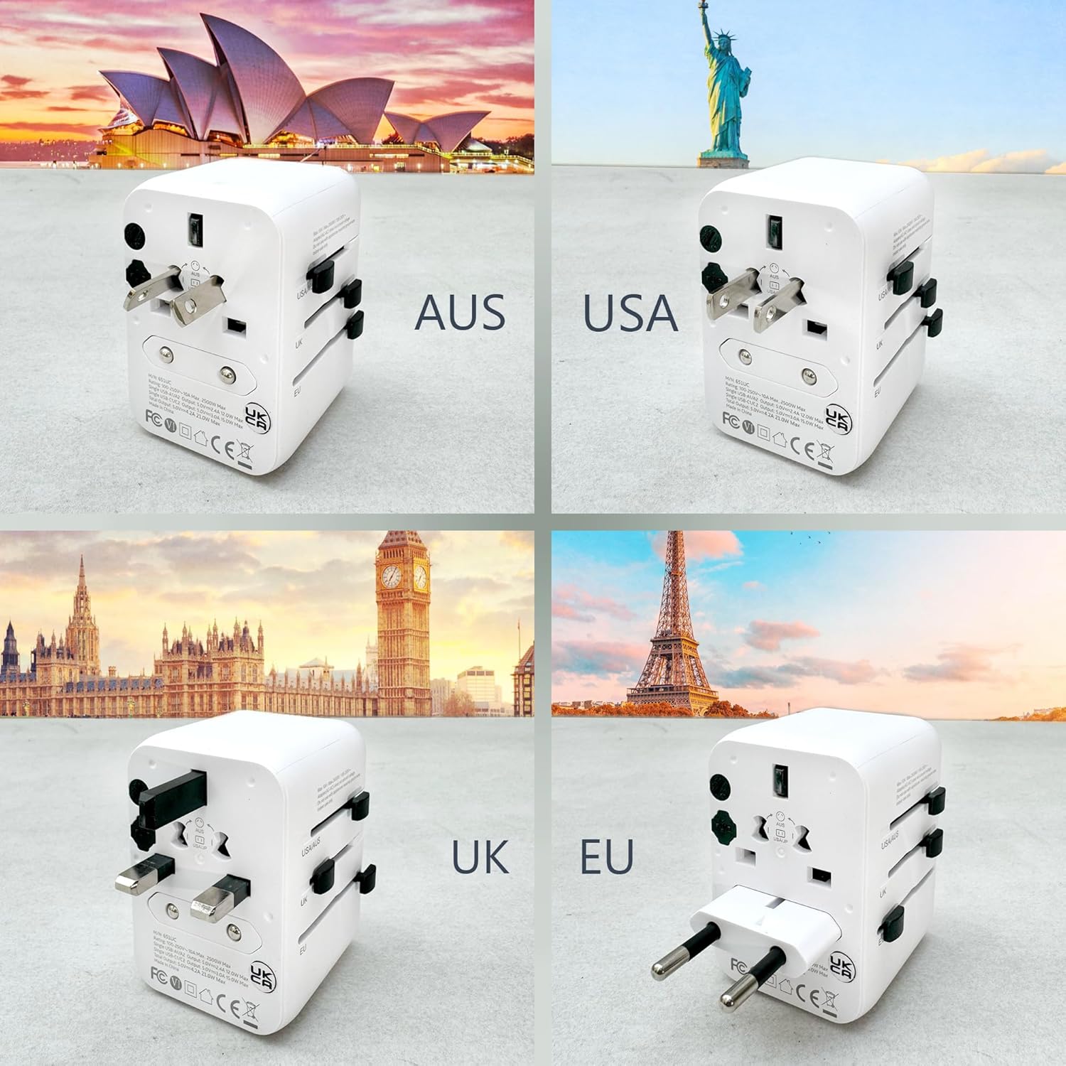 Plug our adapter into any outlet worldwide, supporting: