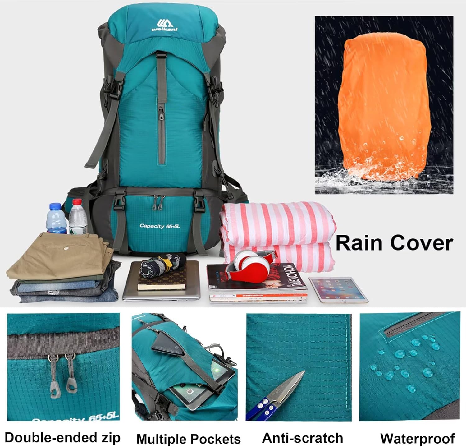 NTUOCAW 70L Hiking Backpack with Rain Cover Large Trekking Backpack for Men Women Waterproof Camping Rucksack Lightweight Backpacking for Outdoor Sports Travel Hiking Cycling Climbing Mountaineering