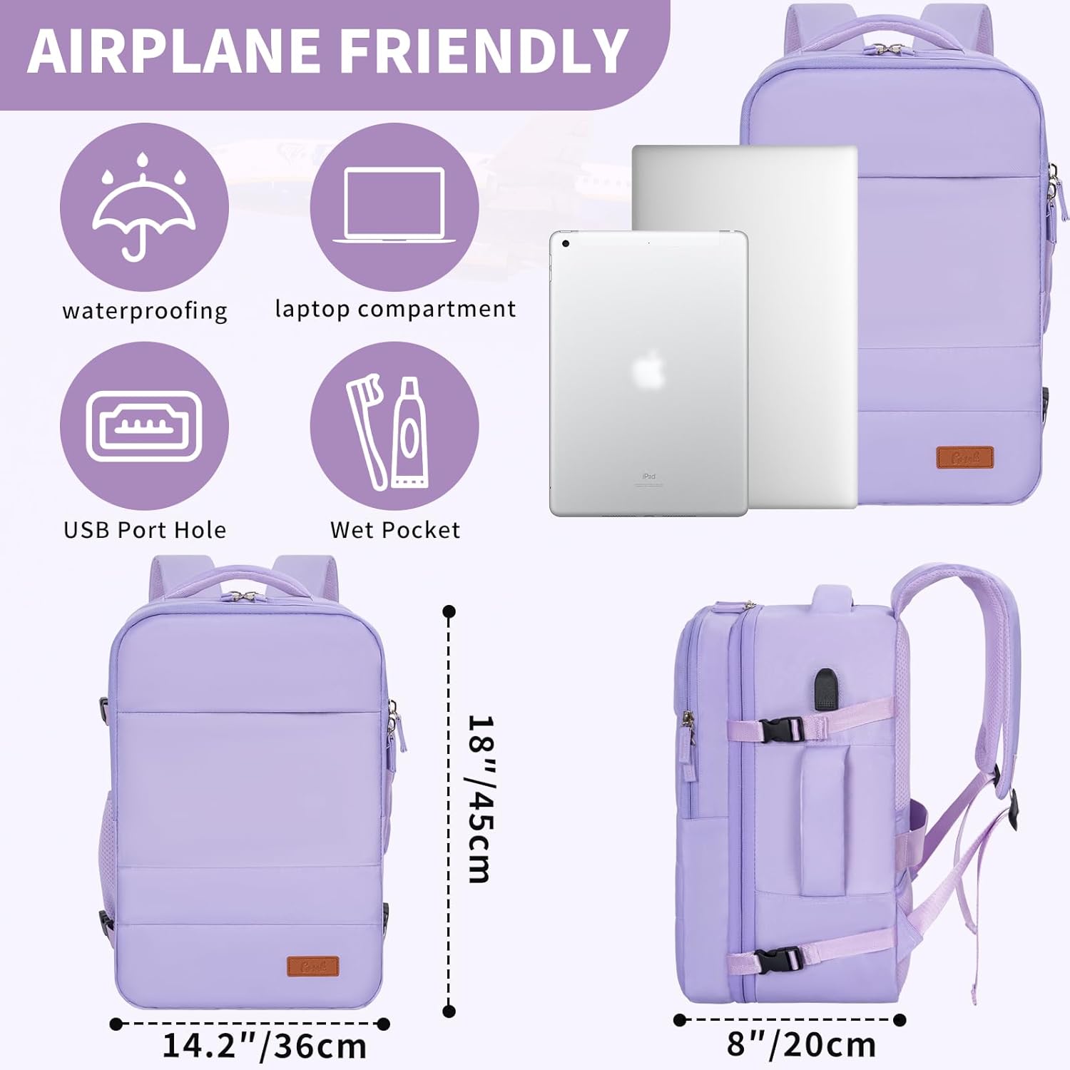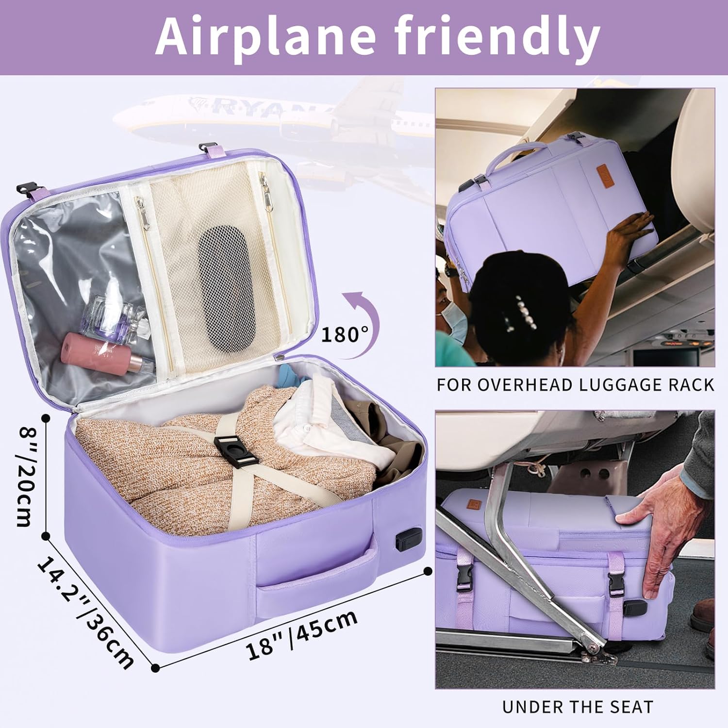 【Designed for Aviation]】The scale of the cabin backpack meets the scale necessities of most airways, and you may carry it with you. The scale is ideal, appropriate for putting within the overhead baggage compartment and beneath the seat. The backpack could be unfolded 180°, which could be very handy for packing and safety examine baggage