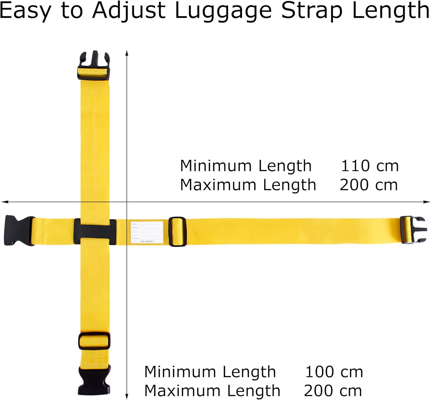 OW-Travel Personalised Luggage Cross Straps for Suitcases (1 Pack Yellow) Easy to Spot Sturdy Suitcase Straps with Luggage labels. Travel Belt for Baggage Bag. Case Belts