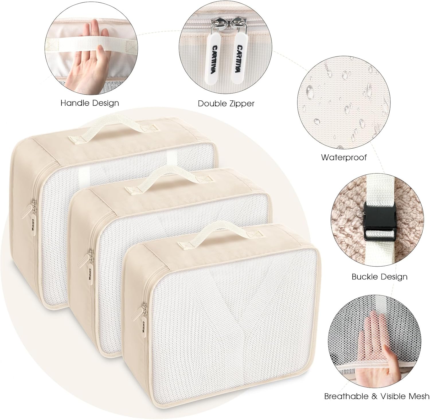 Packing Cubes for Suitcase, Carttiya Travel Luggage Packing Organizers for Backpack, Waterproof Travel Essentials Bag Clothes Shoe Toiletries Storage Bags(8PCS) (Beige)