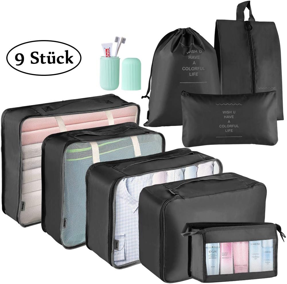 9 Pcs Tremendous Worth Journey Packing Set: The set embody 3 packing cubes with see by way of mesh prime for garments, 1 personal cubes for bras and underwear, 1 journey footwear bag, 1 toiletry bag, 1 toothbrush cup,1 laundry bag for soiled garments and 1 flat bag for small objects, like socks, digital equipment or keys.