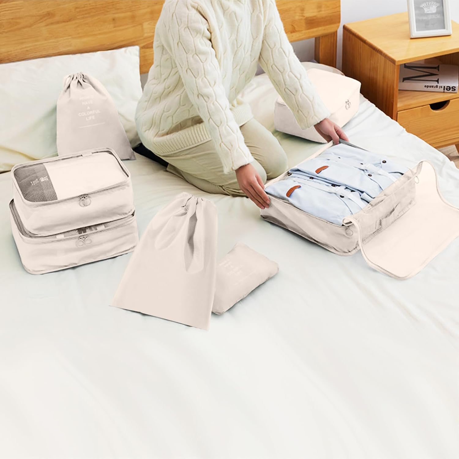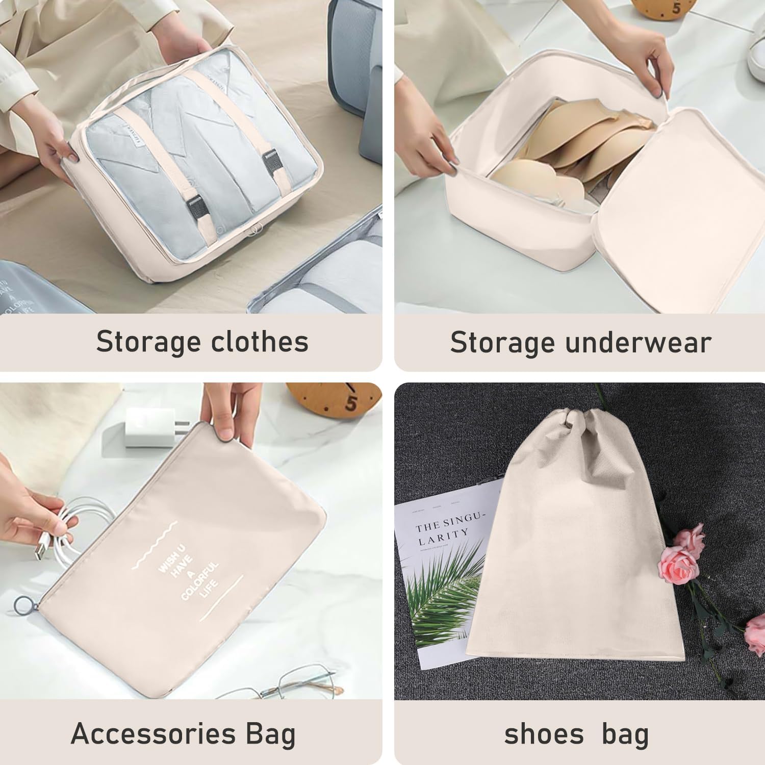9 Pcs Journey Packing Organisers Set: embody 3 journey packing cubes with see by mesh, 1 non-public cubes for bras and underwear, 2 footwear bag, 2 drawstring soiled bag, 1 flat pockets for socks, digital equipment or keys. The journey organizer retains your garments, footwear, toothbrushes, toiletries, soiled garments and extra neat and arranged, in order that your suitcase house may be totally utilized for all of your journey wants.