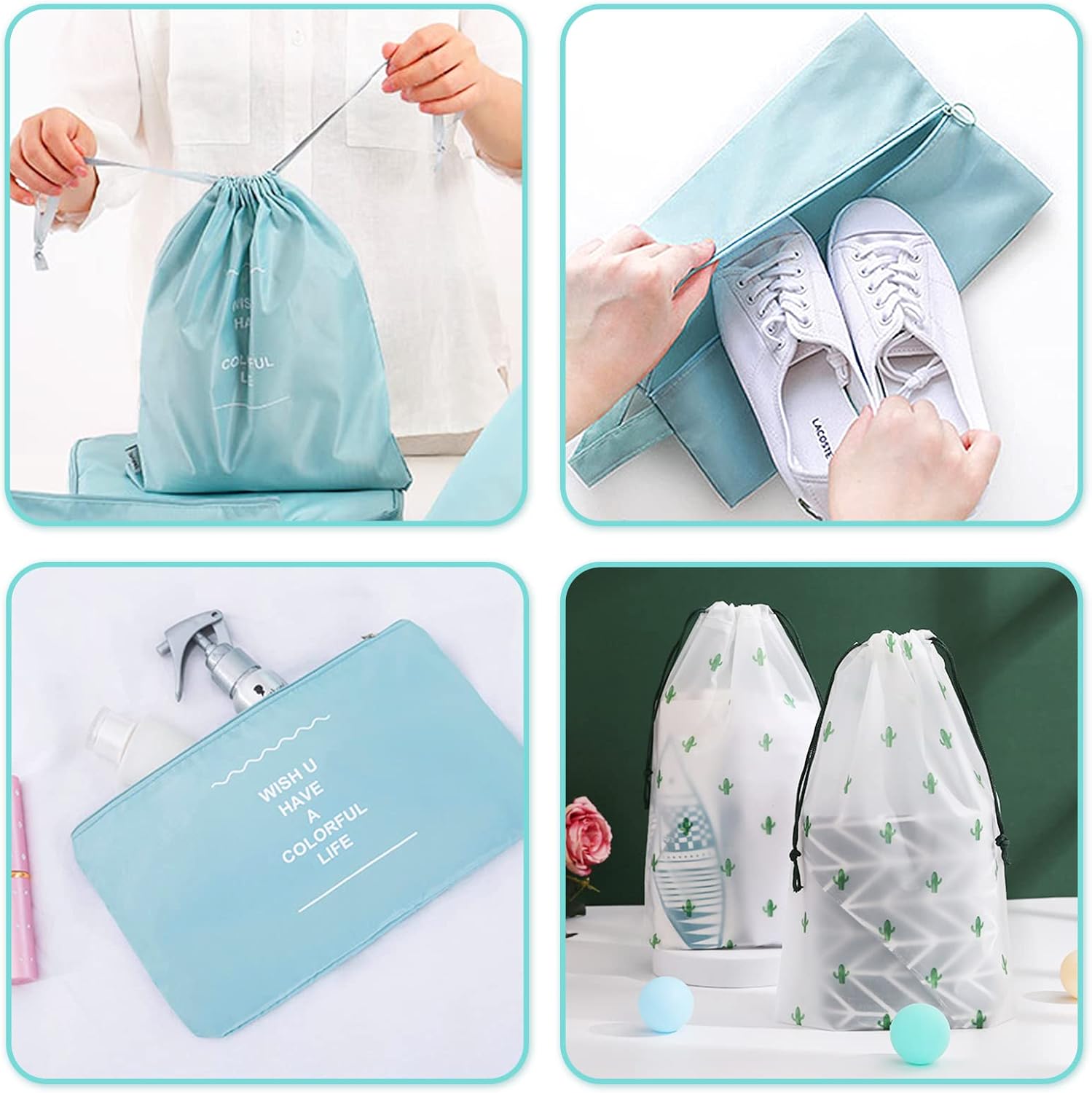 【Package deal Contents】 Our packing cubes for suitcases set consists of 4 journey packing cubes + 1 toiletry bag + 1 drawstring bag + 1 zipper bag + 1 shoe bag + 5 clear baggage, which completely meet your journey wants!