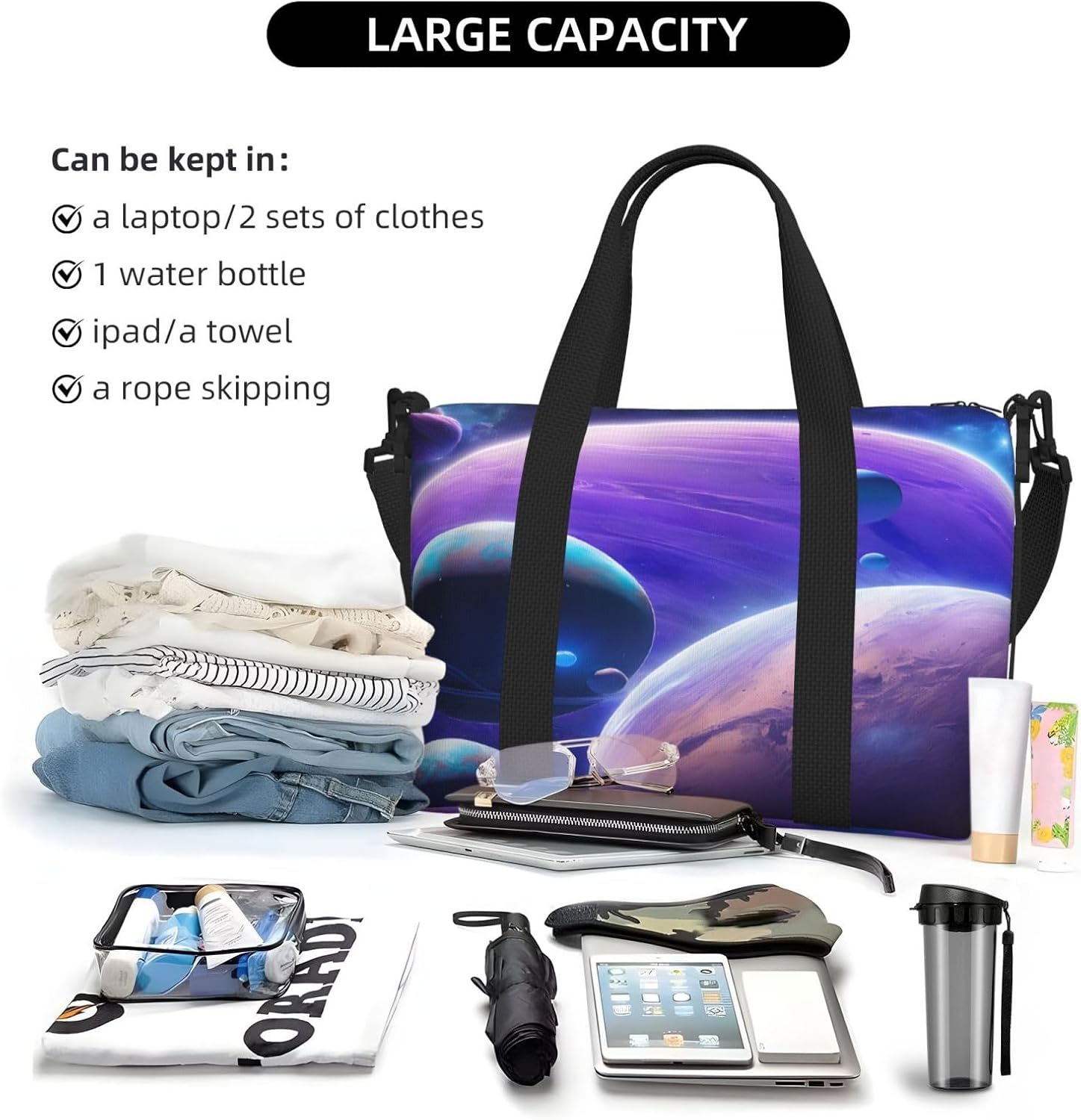 (Planet) Waterproof Lightweight Hand Travel Bag – Large Carry-On for 3-5 Day Trips | Air Travel, Sports, Weekend Use | Men & Women (1-Pack)