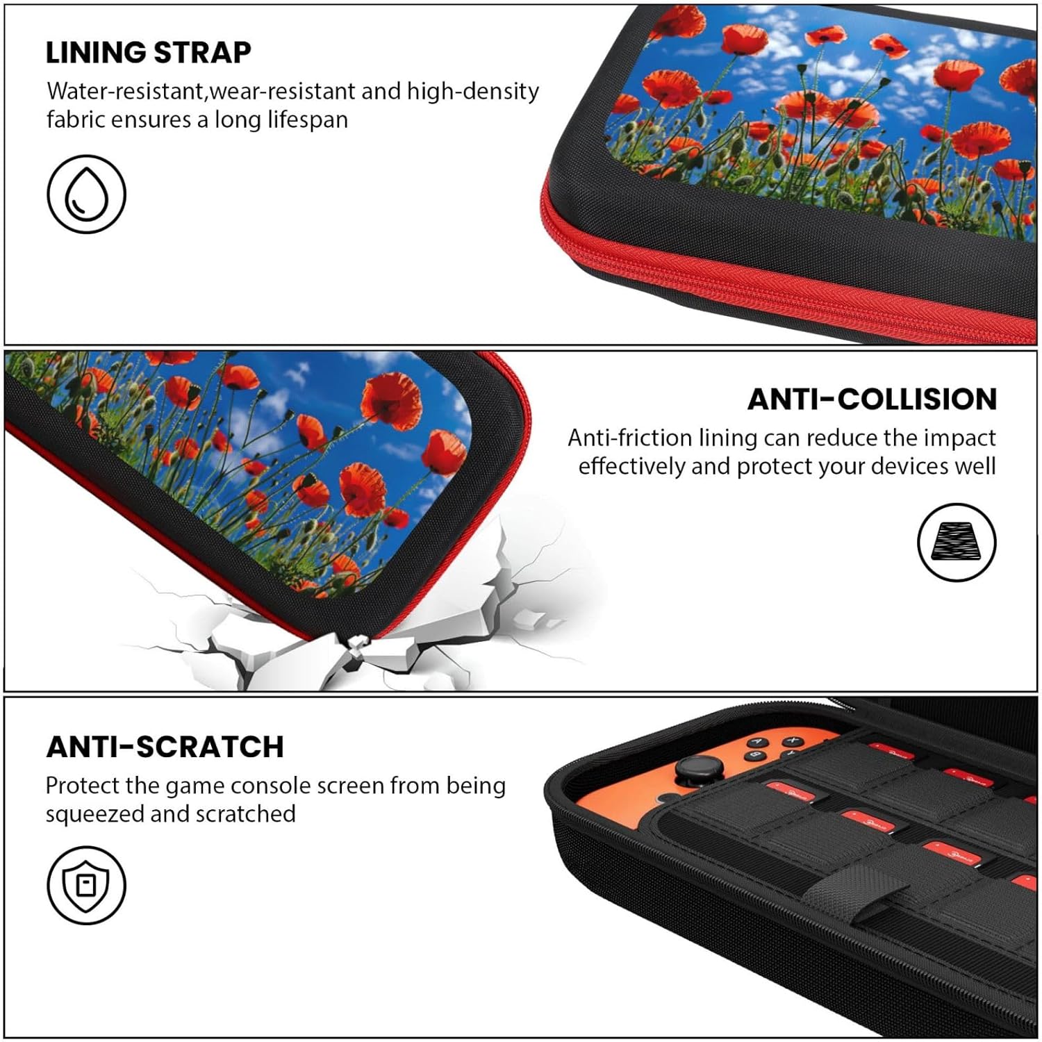 Safe Storage: With 20 recreation card slots and a zippered mesh pocket, this Poppies on Blue Sky Print case retains all of your Swap equipment, together with recreation playing cards, headphones, and charging cables, organized and safe.