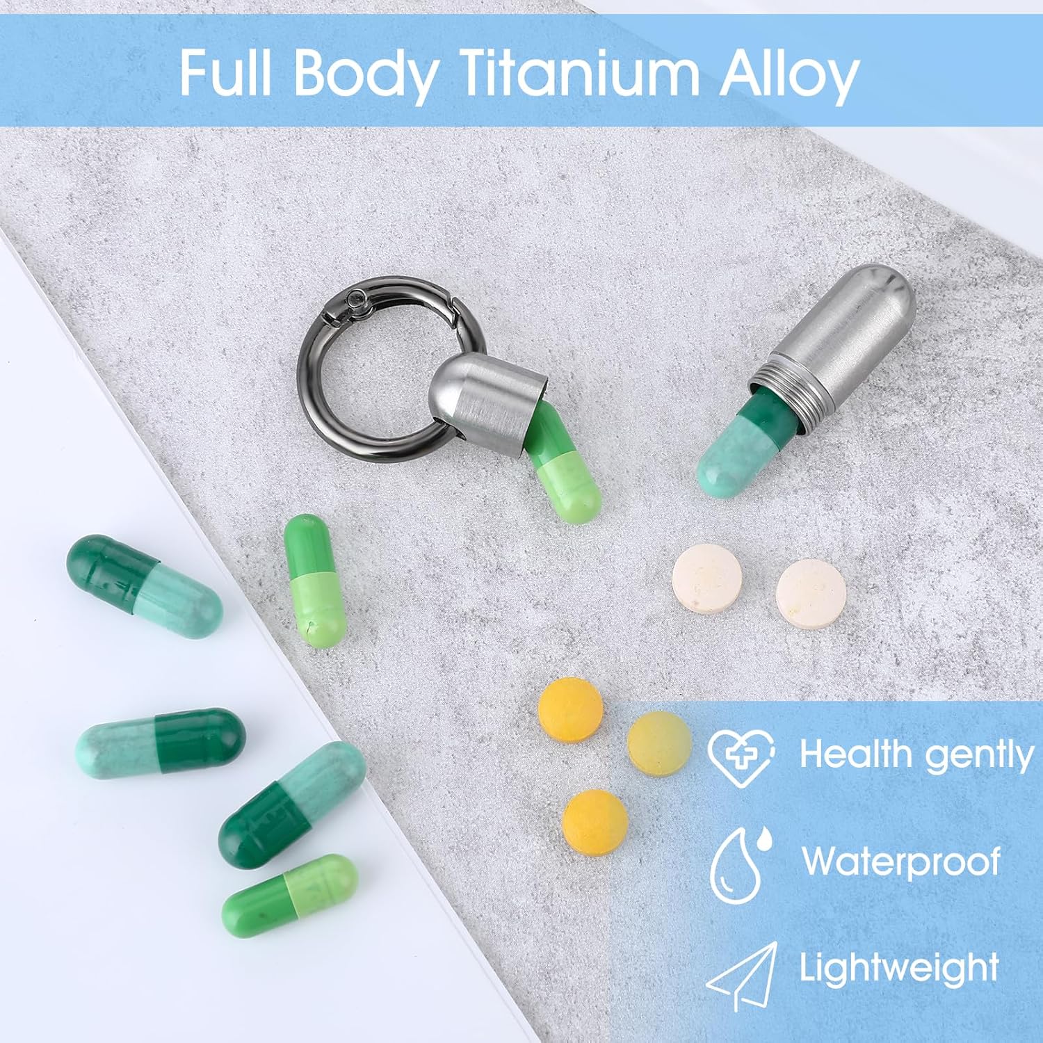 2. Tablet container keychain may also retailer your notes, earplugs, toothpicks.