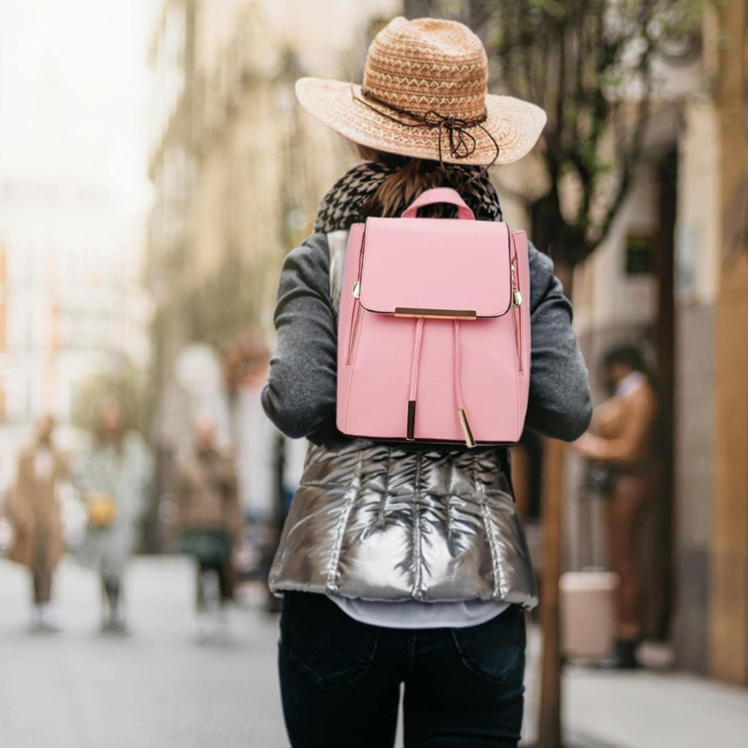 Leisure flip backpack bag PU Leather-based Shoulder Bag, College Journey Backpack Multi-Operate Rucksack For Teenage Women Youngsters Women