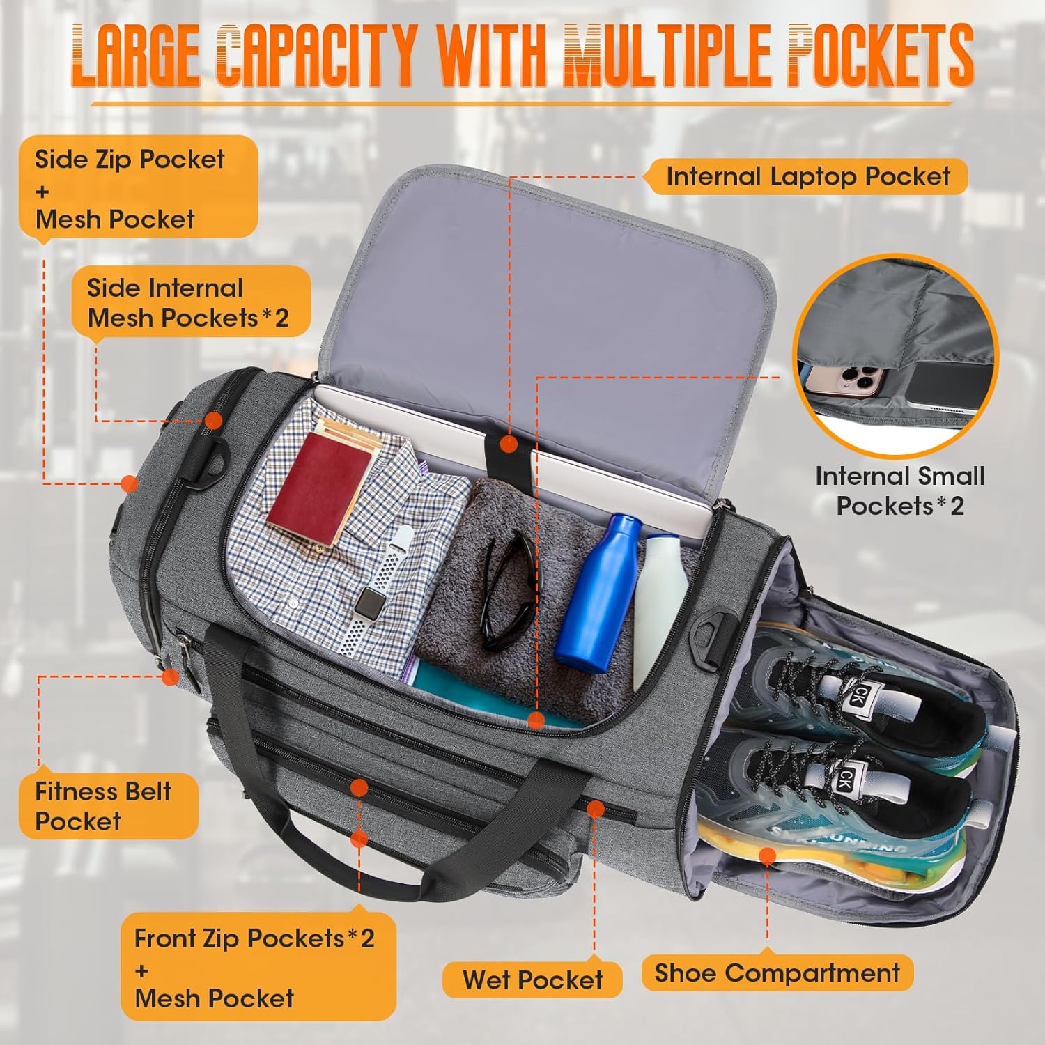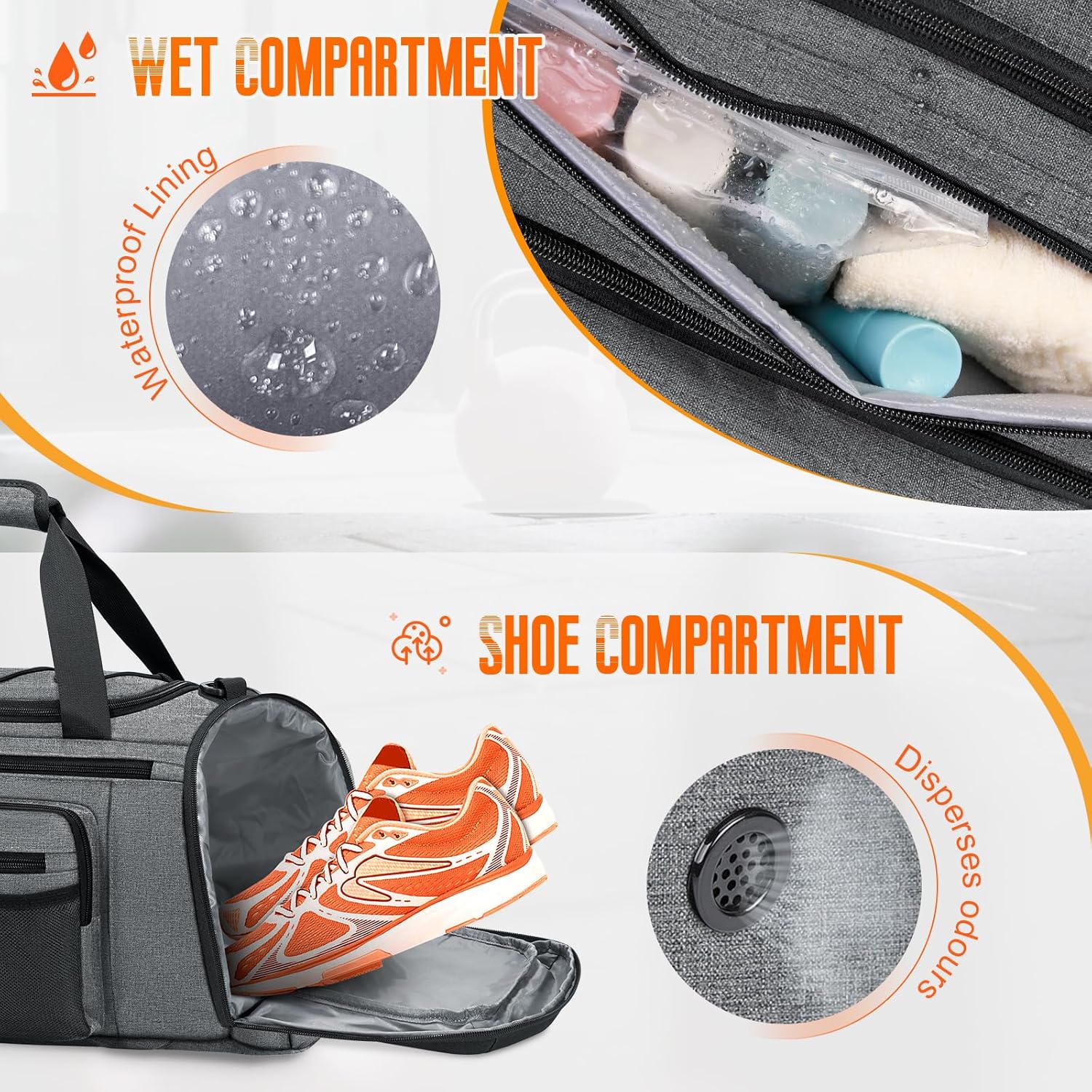 【Shoe Compartment and Moist Pocket】This huge sports activities bag includes a shoe compartment particularly designed to maintain your footwear separate from different gadgets, so that you don’t have to fret about dirtying your clear stuff. It additionally has two air flow holes to eradicate odors. Moreover, there’s a moist pocket with a water-resistant lining, permitting you to securely retailer damp gadgets or toiletries with out wetting different dry belongings.