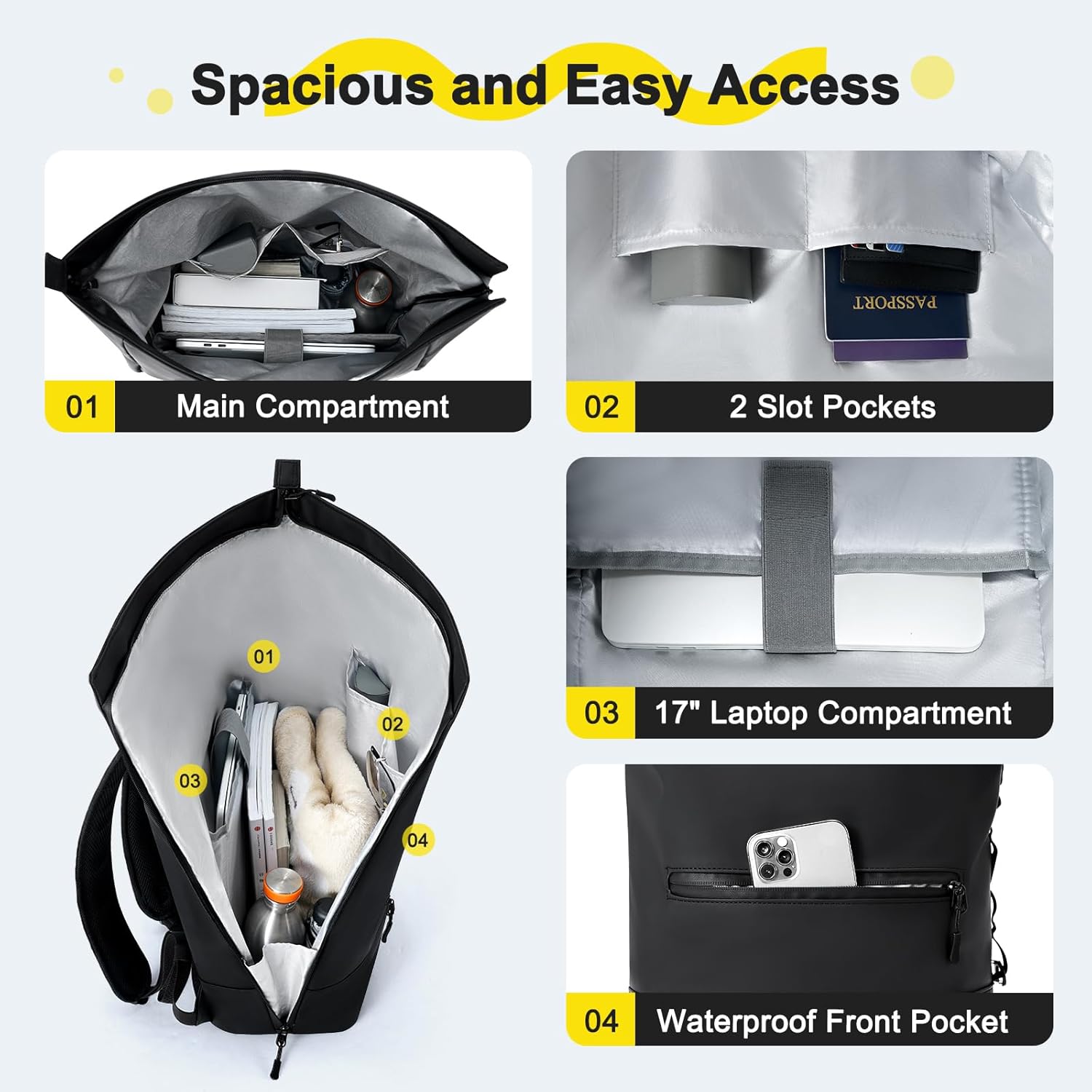 Uncover the final word flexibility with this trendy roll-top laptop computer backpack. It options an adjustable capability, providing a quantity vary of 18L to 22L. The elegant roll-top design with adjustable buckle and zipper not solely protects the inside but additionally provides further house. The bag is manufactured from waterproof and sturdy materials for very long time use. It has a zipper opening on the aspect for fast entry to your belongings. The ergonomic again system with breathable padding and shoulder straps ensures consolation throughout journey. This roll-top laptop computer backpack is ideal for each day commuting, enterprise journeys, and quick journeys. It may be used as a water-proof backpack, informal daypack, 17 inch laptop computer backpack, journey backpack, faculty backpack, commuter bag, and on a regular basis bag for women and men. It makes an incredible present for mates, household, academics, and extra.