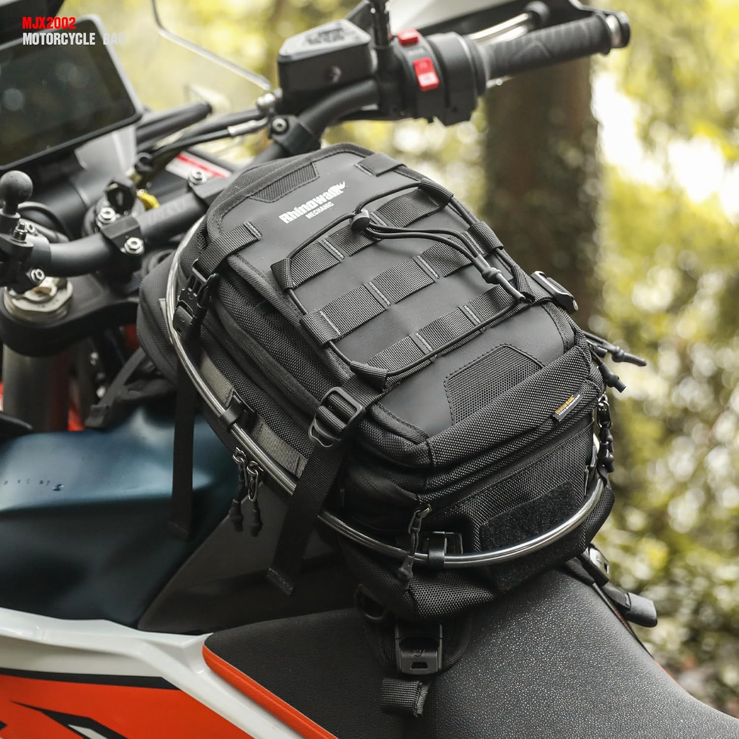 Rhinowalk Motorbike Journey Baggage Tank Bag Motorbike Backpack with 1.5L Water Bladder MOLLE System Matches Honda Yamaha Suzuki Kawasaki Harley-Black