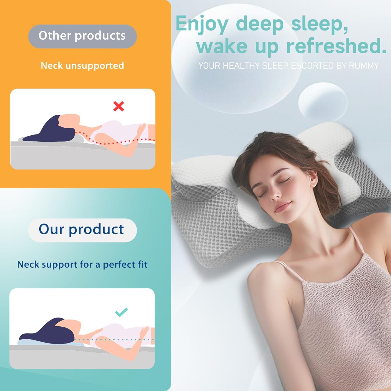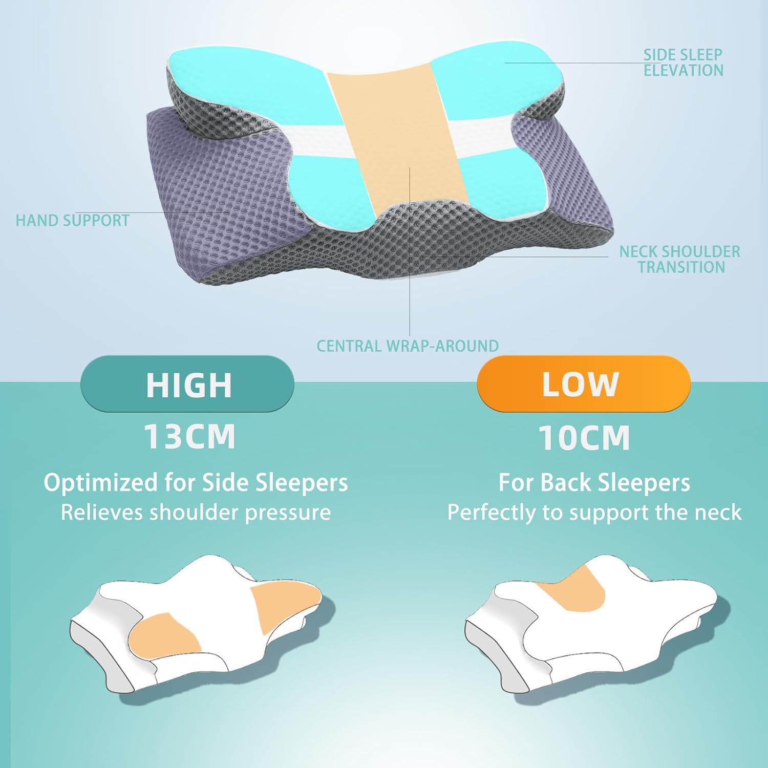 【Assist for All Sleep Positions】 Designed to swimsuit aspect, again, and abdomen sleepers, this orthopedic pillow options adjustable peak and contoured edges, guaranteeing correct alignment and help for any sleep place.