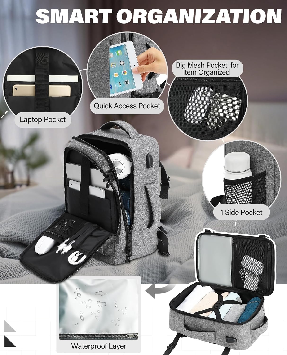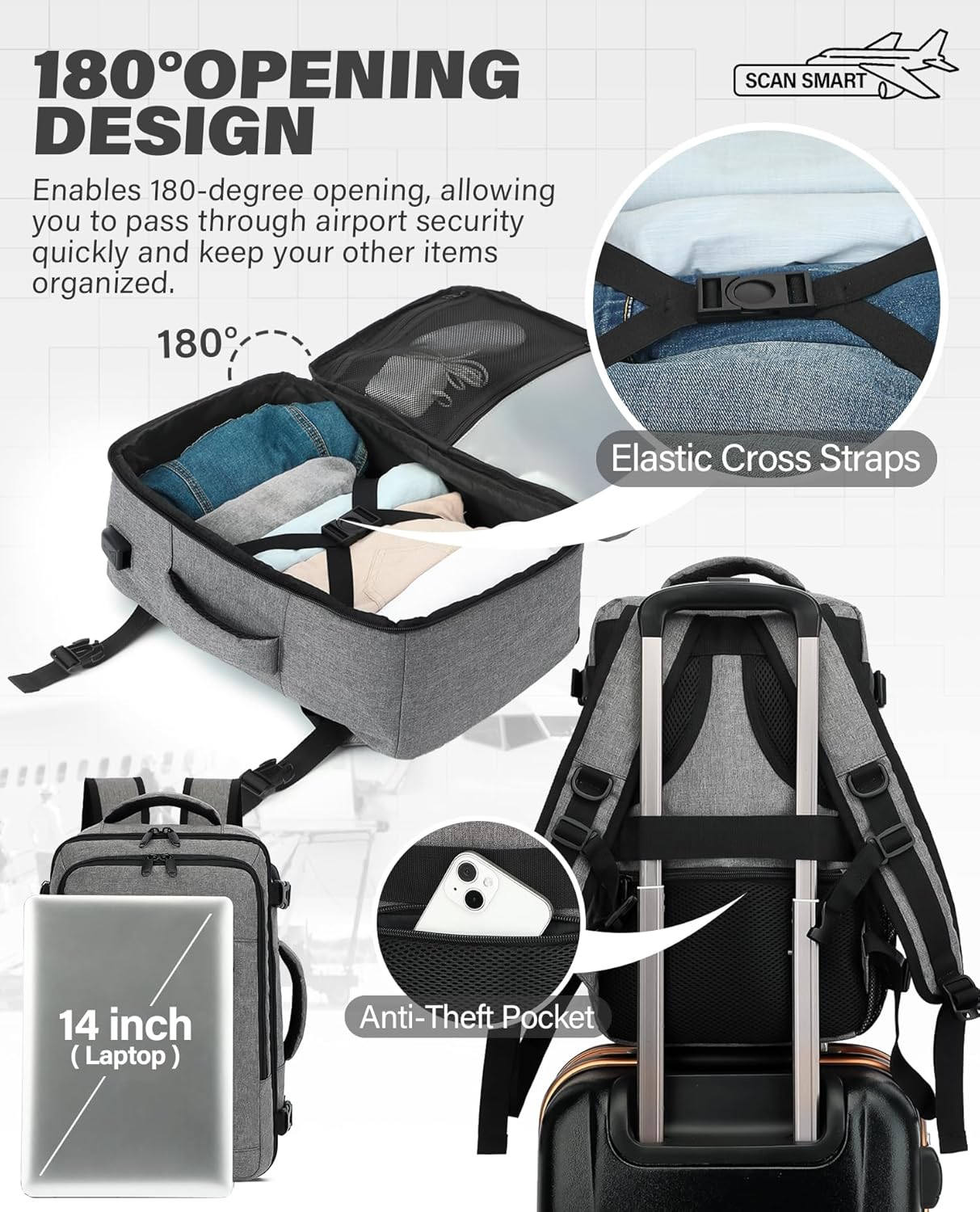 【TSA Accepted & Hold Secure】Our backpack comes geared up with a TSA permitted design that lets you simply unfold it 90-180 levels for fast passage by way of airport safety. It additionally features a baggage strap for straightforward attachment to your suitcase and a anti theft pocket to maintain your belongings protected, good for worldwide journey and day journeys.