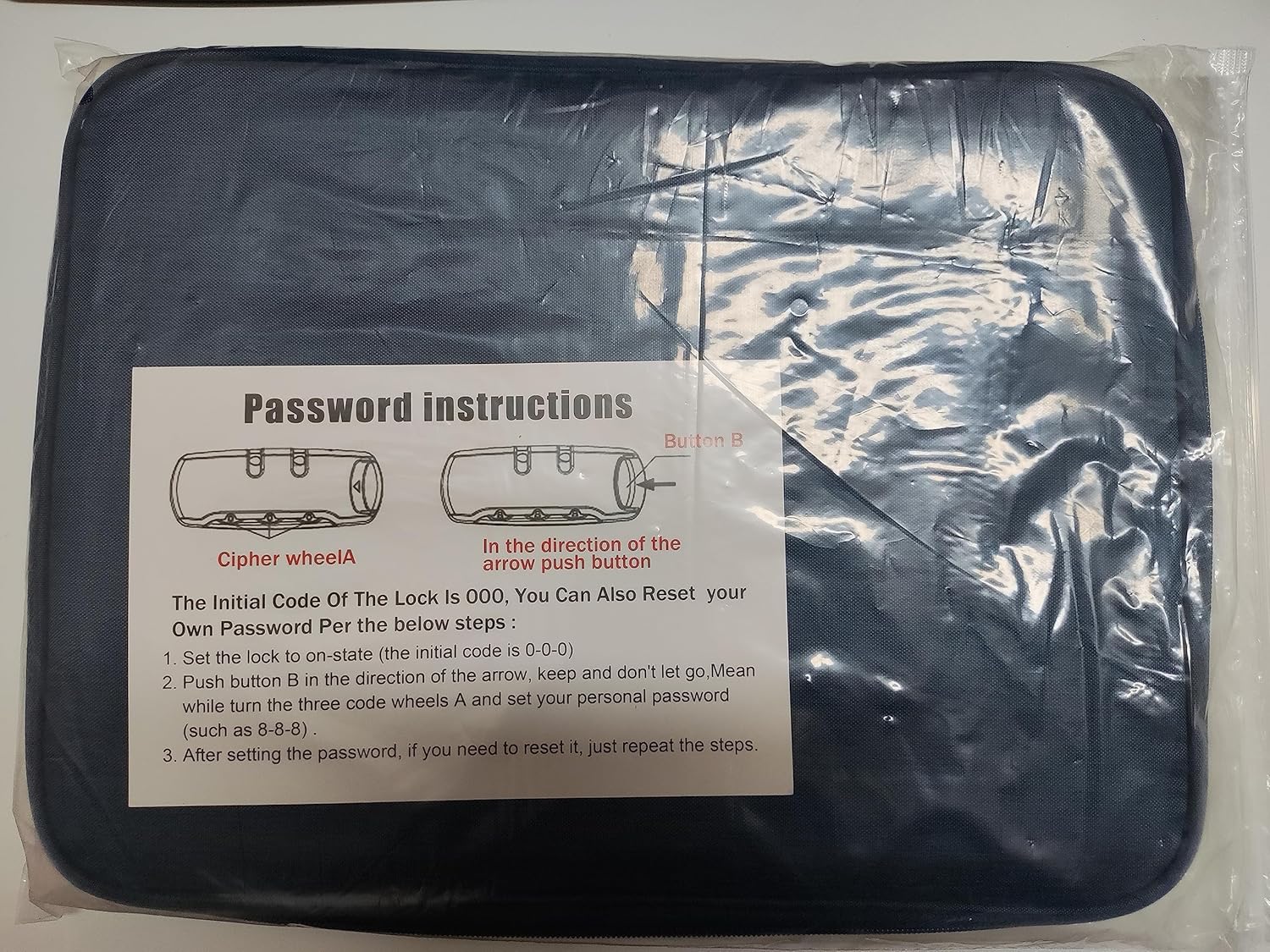 If you have to reset the password. Push the button and preserve it, simultaneous flip the three code wheels and set it to the quantity you need.(In case you are fearful about forgetting the password, it’s endorsed that you simply set it to THREE IDENTICAL NUMBERS, even in case you by accident overlook them, you solely have to strive 10 instances to unlock the lock efficiently.)