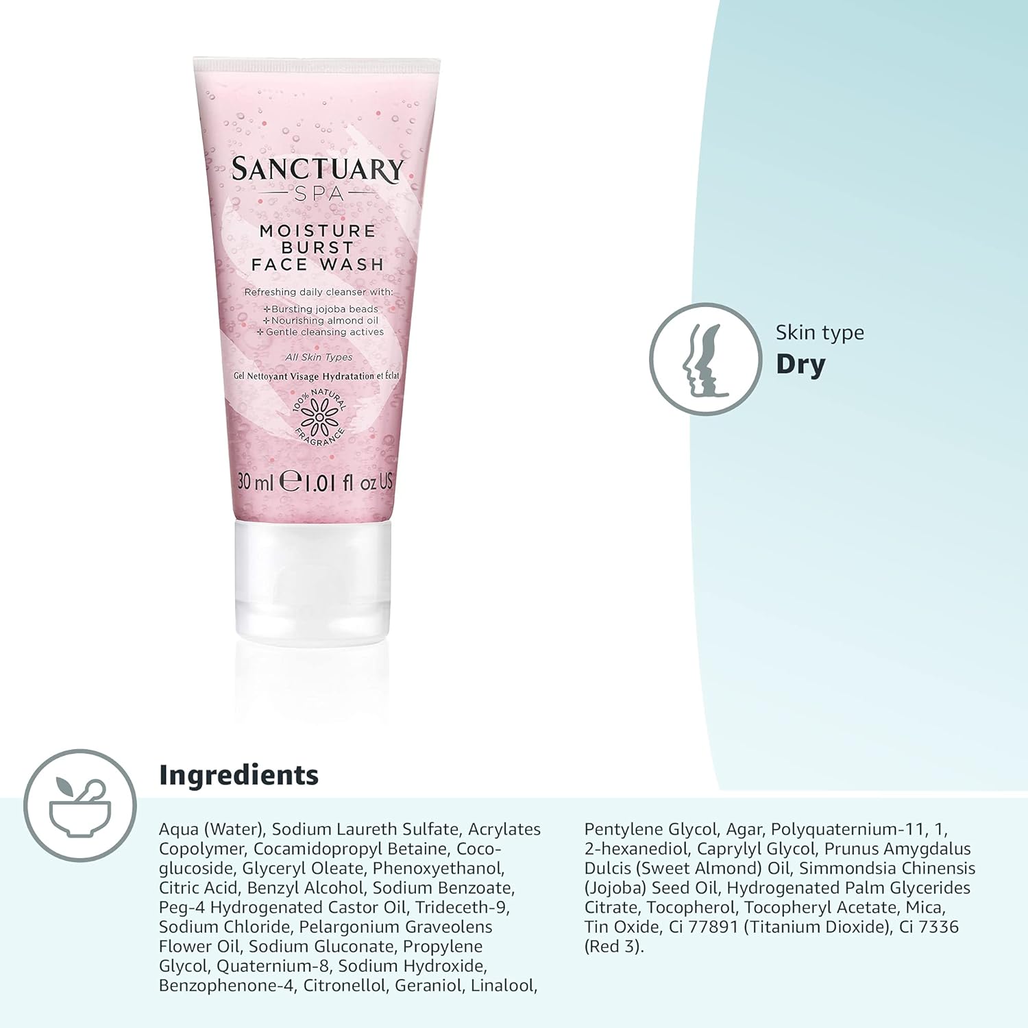 Sanctuary Spa Face Wash, Moisture Burst Gel Facial Wash, Travel Size, 30 ml