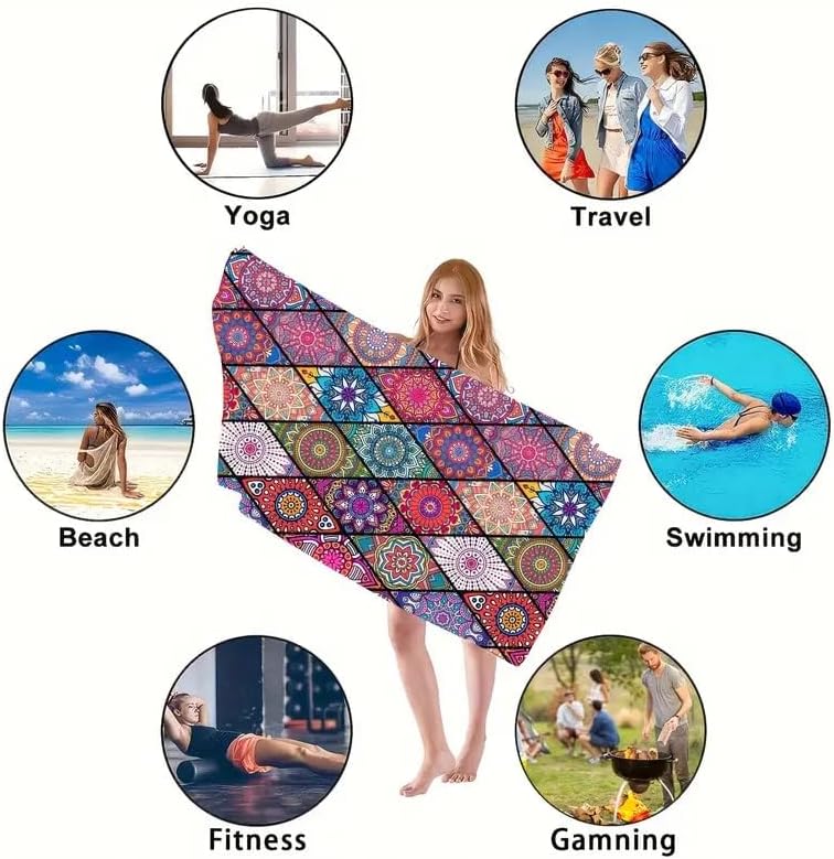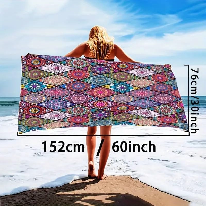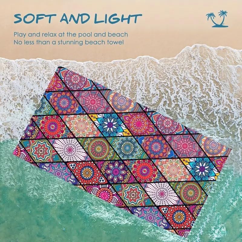 Sand Resistant Beach Towel, Vacation Beach Accessories, Quick Drying Super Fiber Beach Towel, Super Absorbent, Travel Swimming Pool Diving Surfing, Bathroom Accessories (Boho)