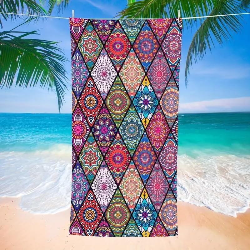Be the first to review “Sand Resistant Beach Towel, Vacation Beach Accessories, Quick Drying Super Fiber Beach Towel, Super Absorbent, Travel Swimming Pool Diving Surfing, Bathroom Accessories (Boho)”