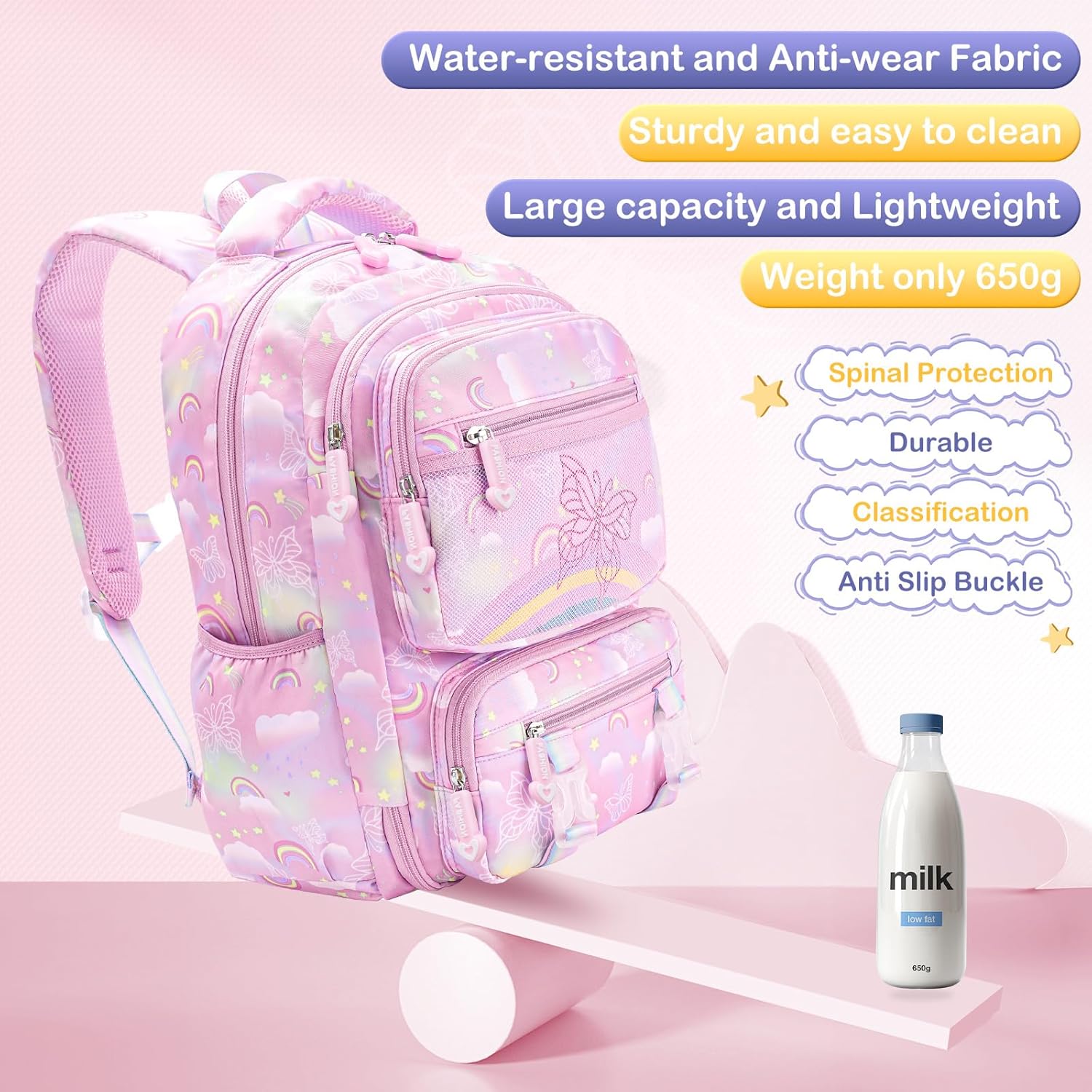 【Scientific Backbone Safety Design】Ladies faculty backpack utilizing tremendous tender breathable again panel, stuffed by sponge, whereas caring for the kid’s again well being to scale back again stress.