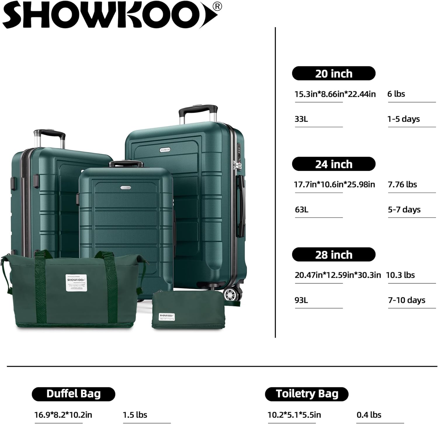 SHOWKOO suitcases not solely present wonderful high quality, but in addition combine classics and traits !Our mission is: your journey accomplice perpetually!We advocate a straightforward, handy and completely happy journey life for our clients !Easy handles, quiet spinner wheels, safe mixture locks and huge capacities make your travels simpler !