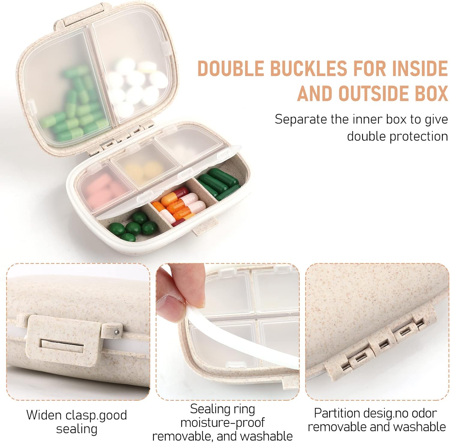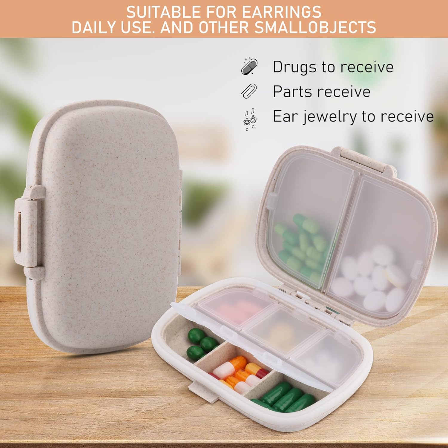 Transportable Tablet Organizer:Day by day compact medication field is constructed from waterproof wheat straw. Medicine can be positioned inside to forestall towards water