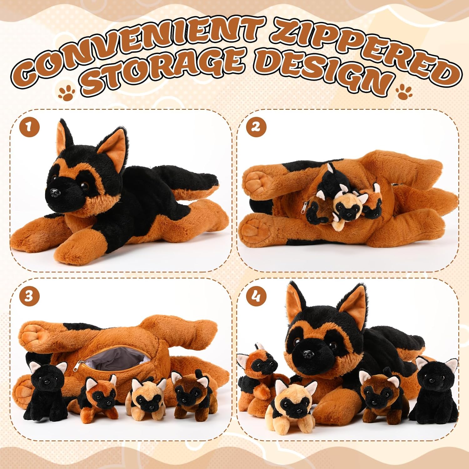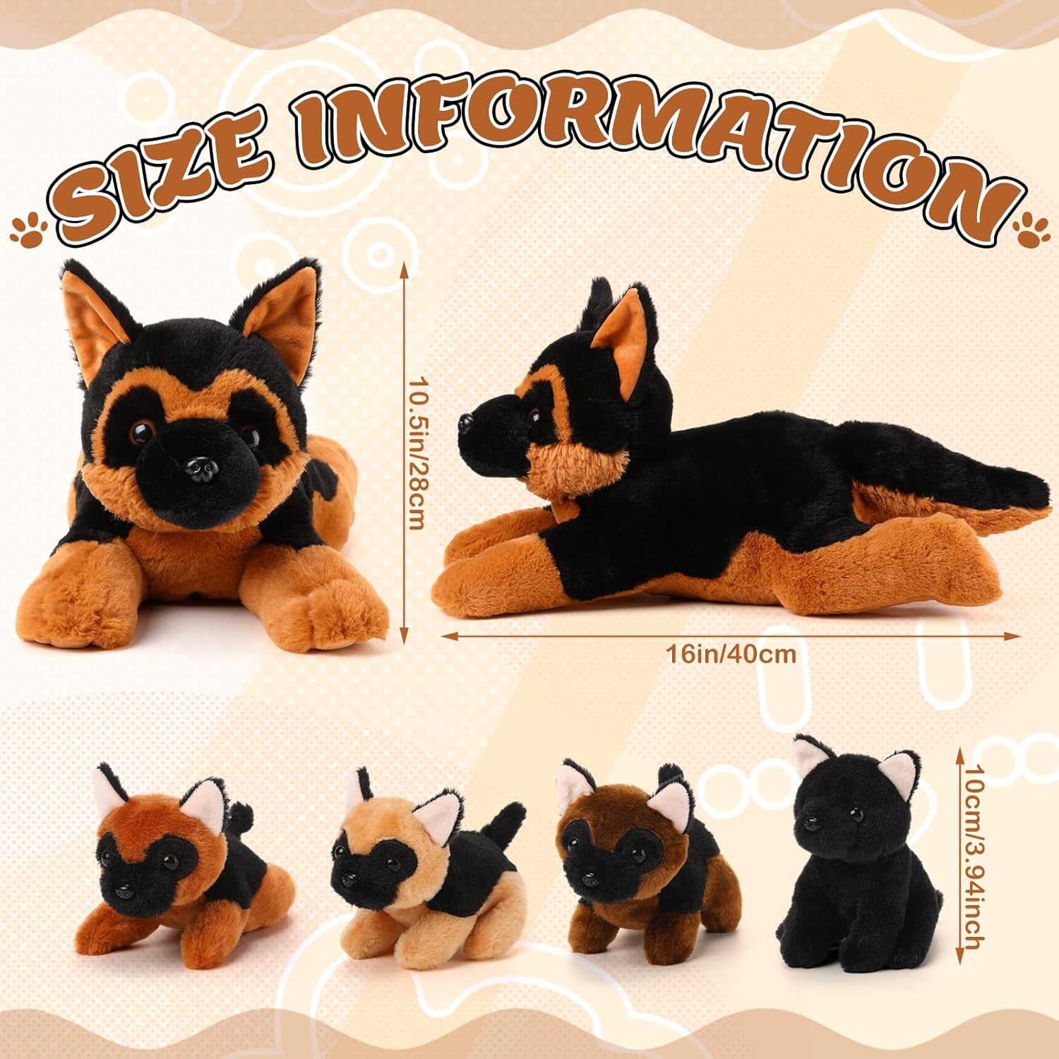 You Will Get: every pack comprises 1 plush German Shepherd mom and 4 little German Shepherd of lovely colours, mild brown, darkish brown, black; Wealthy set to share with mates