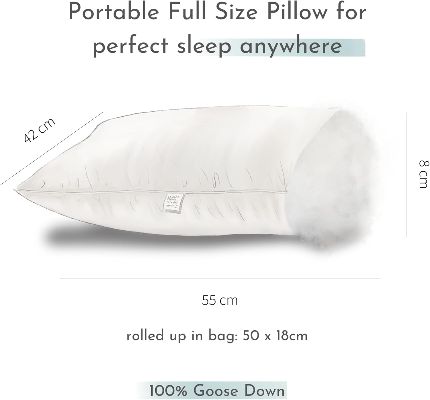 SnooozeGo Journey Pillow – 100% Goose Down – Sleep Like You’re House