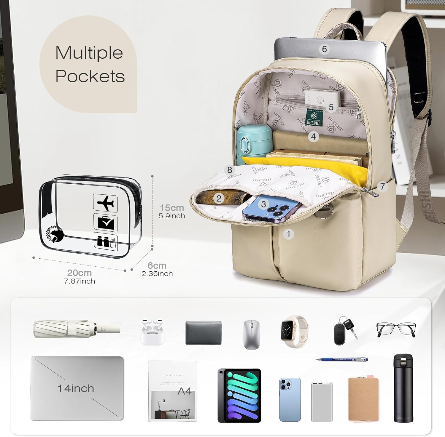 Small Sensible Out of doors Journey Backpack: it options 1 entrance zip pocket, 1 center most important giant pocket, 1 hidden zip pocket on the again, 2 facet pockets, 1 distinctive laptop computer compartment matches as much as 14 inch laptop computer, sufficient area on your journey equipment similar to garments, books, ipad, laptop computer and plenty of different gadgets.
