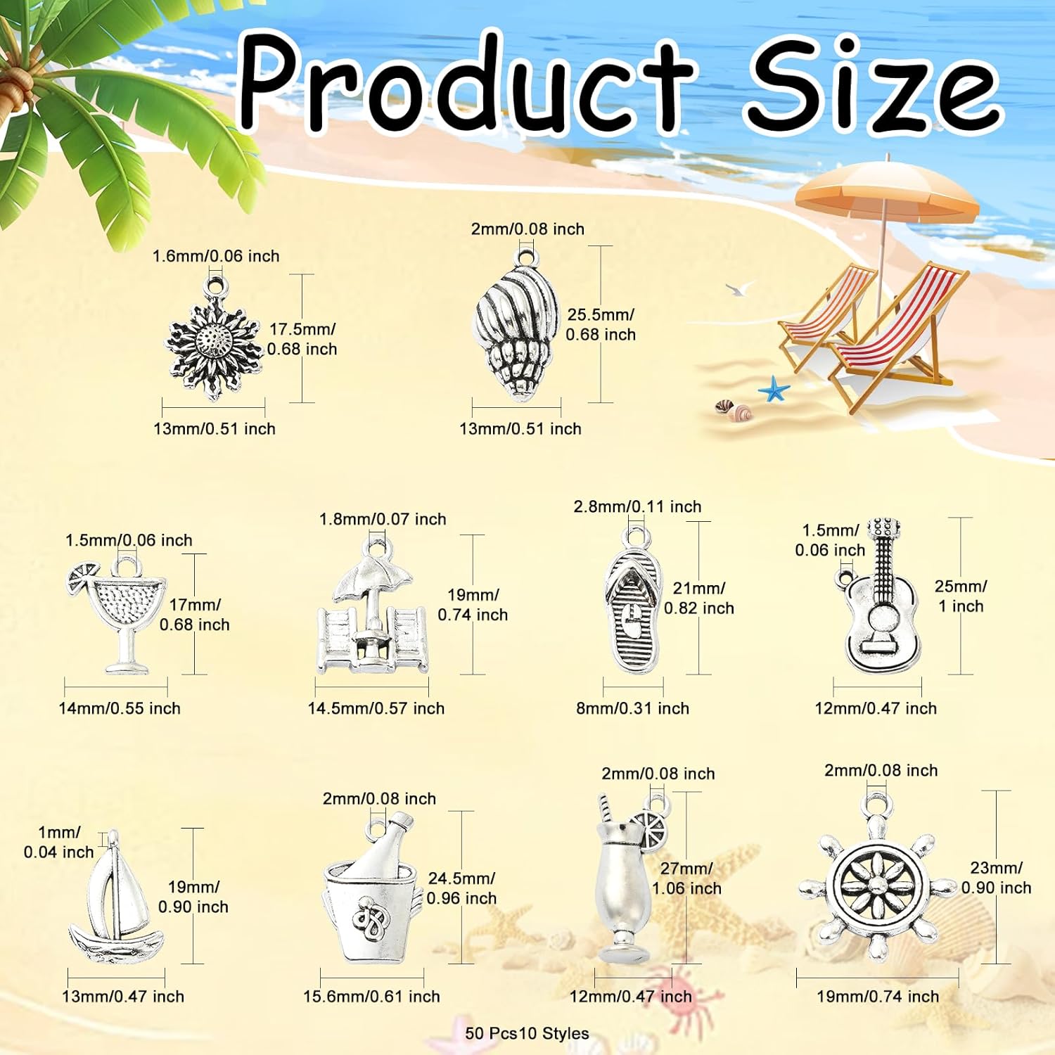 【Varied Kinds】The seashore resort theme charms embody numerous kinds of shapes, akin to sea shell, solar, guitar, umbrella, boat, and so forth. Every appeal may be very beautiful and can also be a wonderful alternative for making crafts or reward giving.
