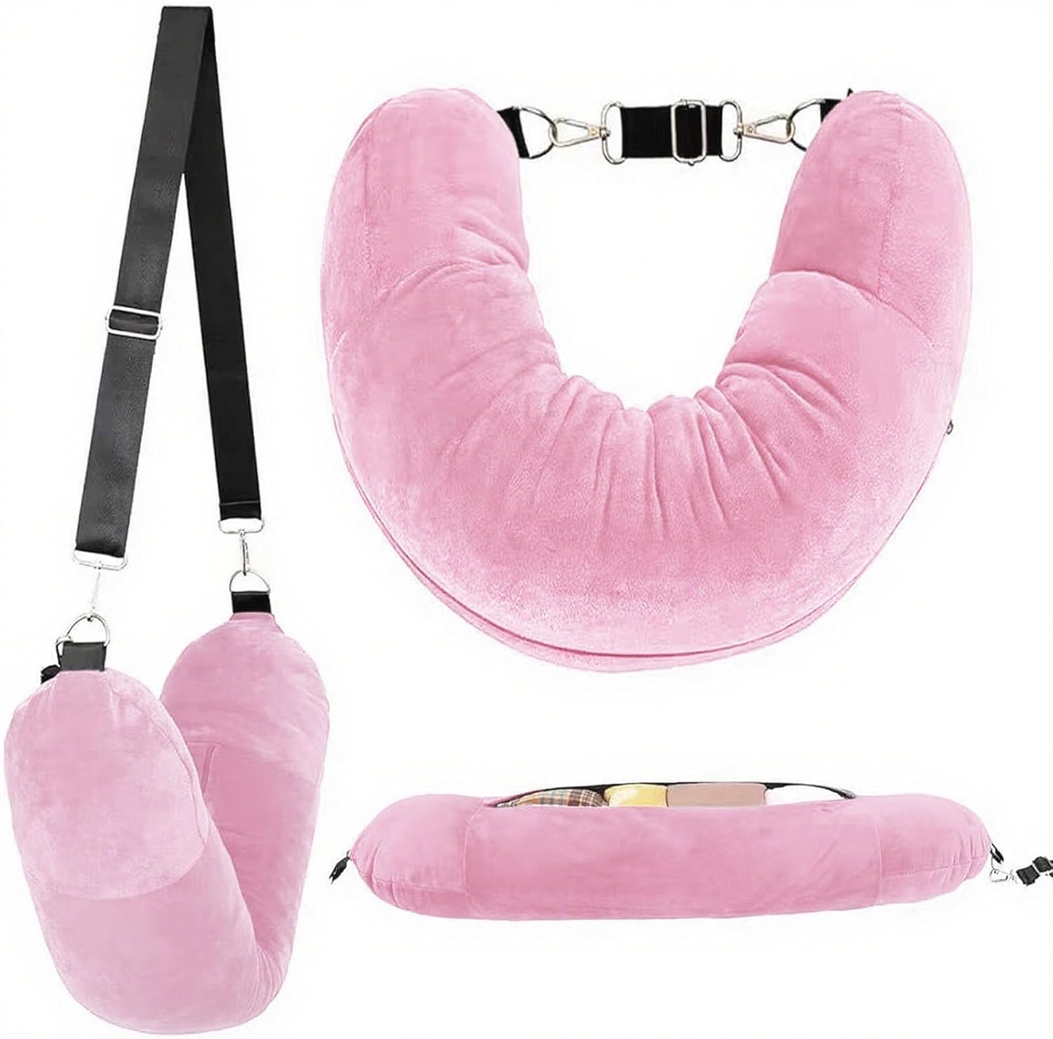 Stuffable Neck Pillow for Travel, 80 * 18.5cm Stuffable Travel Pillow with Adjustable Straps, Travel Pillow Stuffable with Clothes, Neck Pillow Stuffable for Extra Luggage Travel Essentials(Pink)