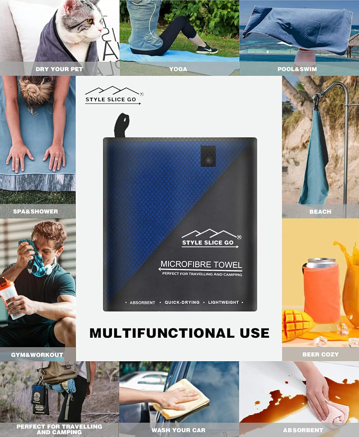 VERSATILE & PRACTICAL : Nice as a sports activities microfiber towel (swimming, gymnasium exercise, yoga health, Pilates, browsing, golf, crusing, tennis), seaside blanket, journey towel for tenting backpack pageant or vacation, trekking ,picnic or use for a campervan journey. Good for drying your canine. A superb shammy towel in your automotive, drying your hair, extremely sturdy so simply pop them within the machine and begin once more!! These fast drying towels will serve you properly.