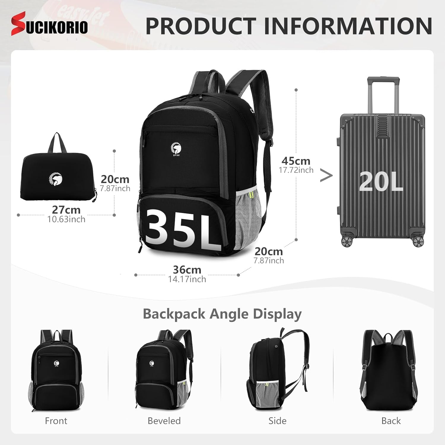【Foldable Journey Backpack】SUCIKORIO light-weight journey backpack is designed to cut back your burden and supply a extra relaxed journey expertise. This journey backpack weighs solely 240g, making certain you need to use extra vitality to hold your gear throughout your travels. When you do not want the backpack, it may be simply folded right into a small bag of solely 27x20cm, saving baggage area.