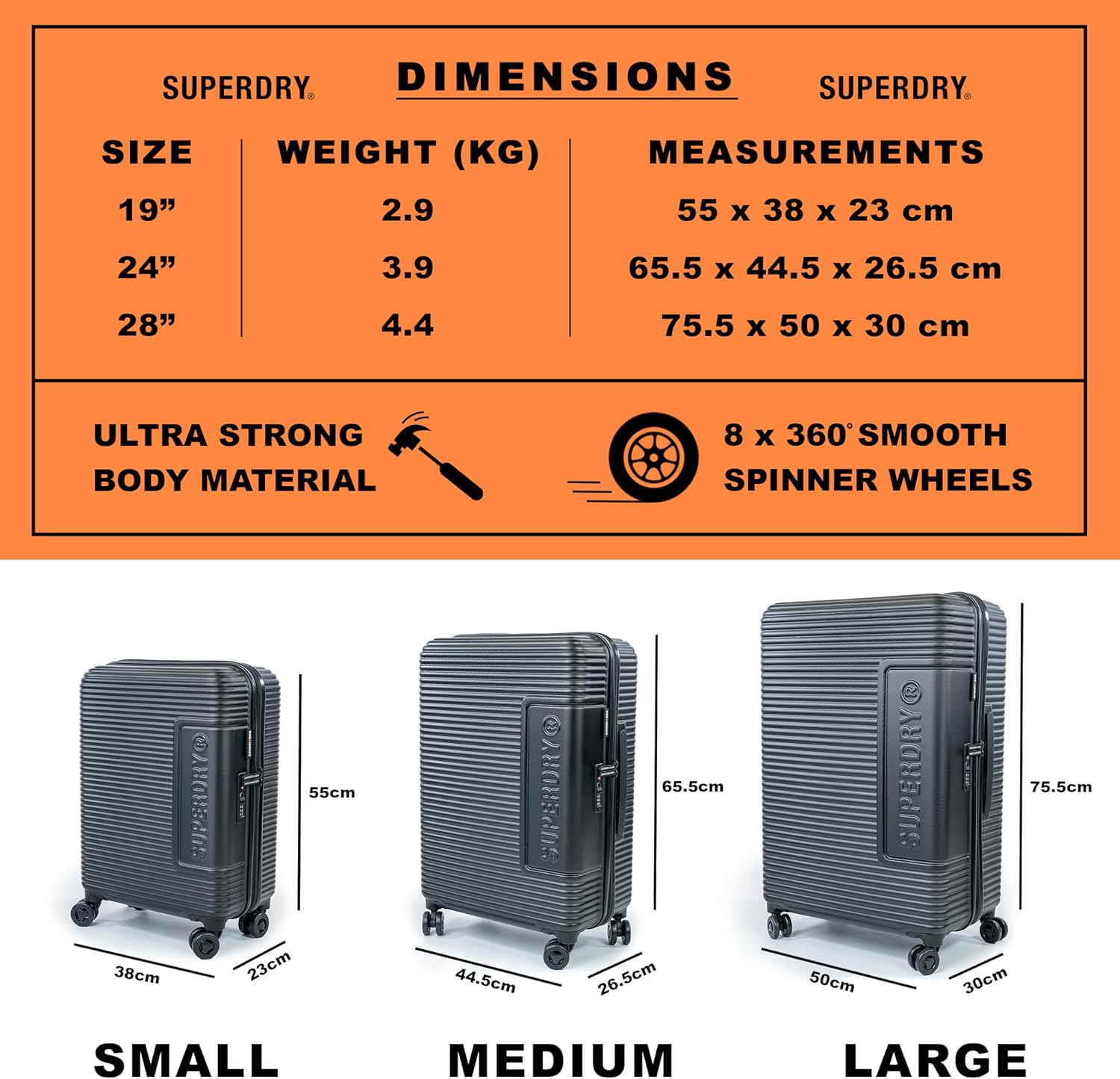 - Superdry is a Model constructed on the Spirit of Journey and an angle of fearless creativity. We now have encapsulated this with the newly launched Superdry Baggage set and is all backed by a 5 YEAR “BUILT TO LAST” WARRANTY. Superdry satisfaction themselves on the standard and sturdiness of their baggage circumstances; to this extent all merchandise are backed by a 5-year guarantee substitute service protecting all manufacturing defects. Purchase with absolute confidence.