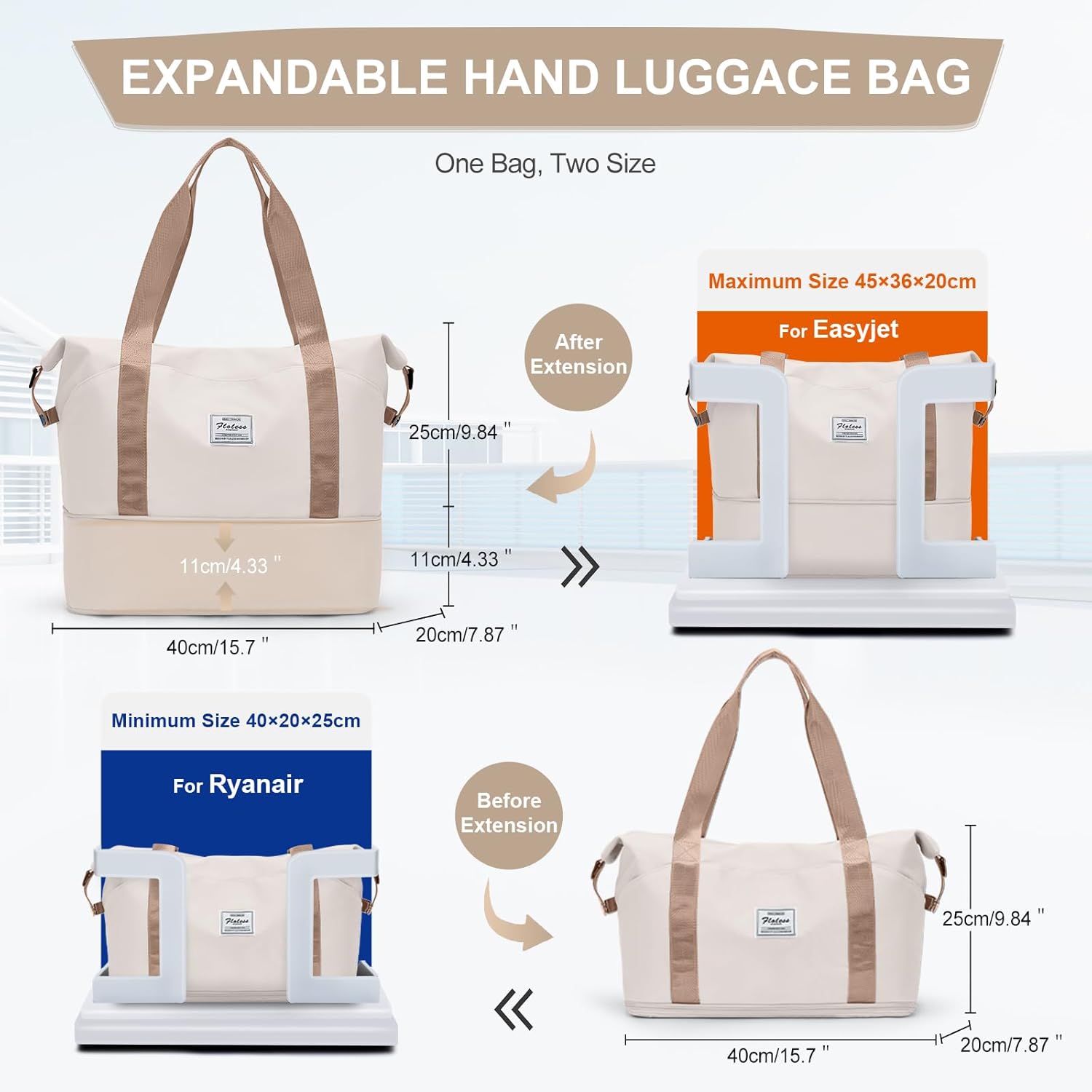 SZLX for Ryanair Airlines Cabin Bag 40x20x25 Underseat Foldable Travel Duffel Bag Holdall Tote Carry on Hand Luggage Overnight for Women and Men 20L(Beige Brown)