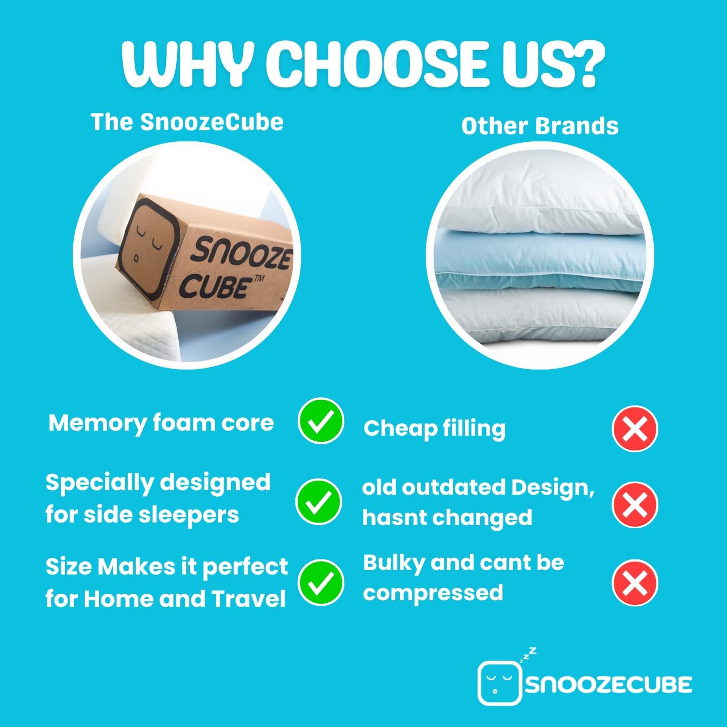 Introducing The Snooze Dice – The Sq. One Reminiscence Foam Pillow! Are you uninterested in stressed nights? Meet the Snooze Dice—your final companion for aspect sleeping! This delicate and supportive reminiscence foam pillow is crafted to raise your sleep expertise, delivering the perfect consolation and magnificence for aspect sleepers. Snooze Dice’s distinctive cubic design fills the hole between your shoulder, aligning your backbone and assuaging neck and again discomfort. Say goodbye to waking up feeling as if you battled a pillow monster all evening! Moreover, it serves as a loud night breathing resolution, guaranteeing you and your associate can get pleasure from uninterrupted, restful nights. Whether or not you are at dwelling or touring, this pillow is your good associate. Its compact design makes it simple to pack for street journeys, sleepovers, or holidays—permitting you to catch these important Zs wherever your adventures lead you. Anticipating moms will recognize the additional assist this pillow presents, permitting for snug aspect sleeping throughout being pregnant. Causes to Love the Snooze Dice: Ergonomic Assist: Offers wonderful neck and again assist for a restful sleep and diminished ache. Reduces Loud night breathing: For quieter nights and undisturbed relaxation. Journey-Pleasant Design: Light-weight and compact, good for sleep on the go. Being pregnant Assist: Permits snug aspect sleeping assist wanted throughout being pregnant. Improves Sleep High quality: Promotes REM sleep for a refreshing morning. Lastly, rediscover the enjoyment of evening’s sleep with the Snooze Dice Reminiscence Foam Pillow! Expertise the right mixture of favor and performance, and get up able to tackle the day. Nice vibes and fantastic desires are simply across the nook!