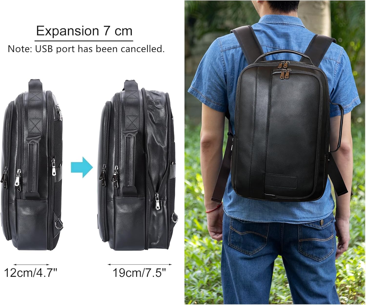 【Expandable backpack】You may increase the black leather-based laptop computer bag wider by 6.5cm/2.6″. Spacious to retailer 15.6 inch laptop computer, A4 recordsdata, pill, cellphone, pens, playing cards, pockets, garments. Dimension:11.4″(L)x3.4″(W: earlier than enlargement) /5.9″(W: after enlargement) x 16.5″ -17.7″(H); Weight:1.43 kg/3.15 lb, Shoulder strap size:65-103cm/25.6″-40.6″. Belt kind: adjustable and concealable within the rear zip pocket.
