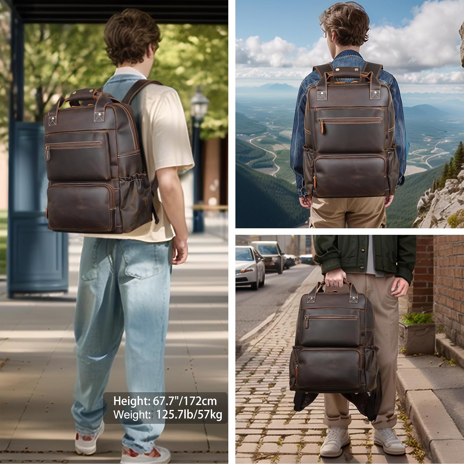 【Materials】The boys’s backpack is made from full grain real leather-based, which is sturdy and sturdy. It could actually face up to any journey you intend to undertake. The retro look and disordered scratches signify a pure type. Utilizing it for touring is your best option.