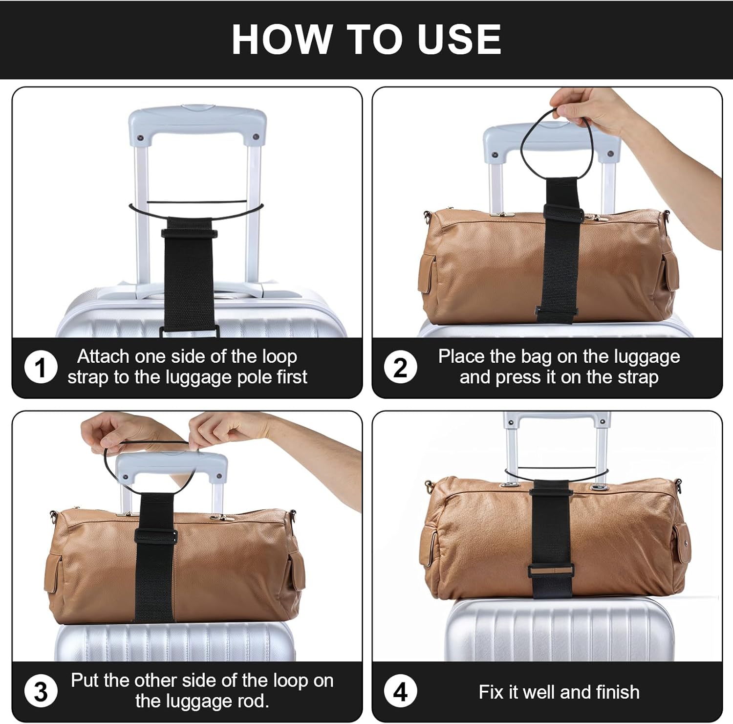 Tips on how to Use: Clamping belt is used as a journey bag with a sliding deal with; stick the rubber on one aspect to the sliding deal with, put the bags on the belt, and dangle the rubber on the opposite aspect on the deal with; you possibly can dangle the rubber on either side deal with and fix the scarf or bag to the belt. Shops compactly when not in use.