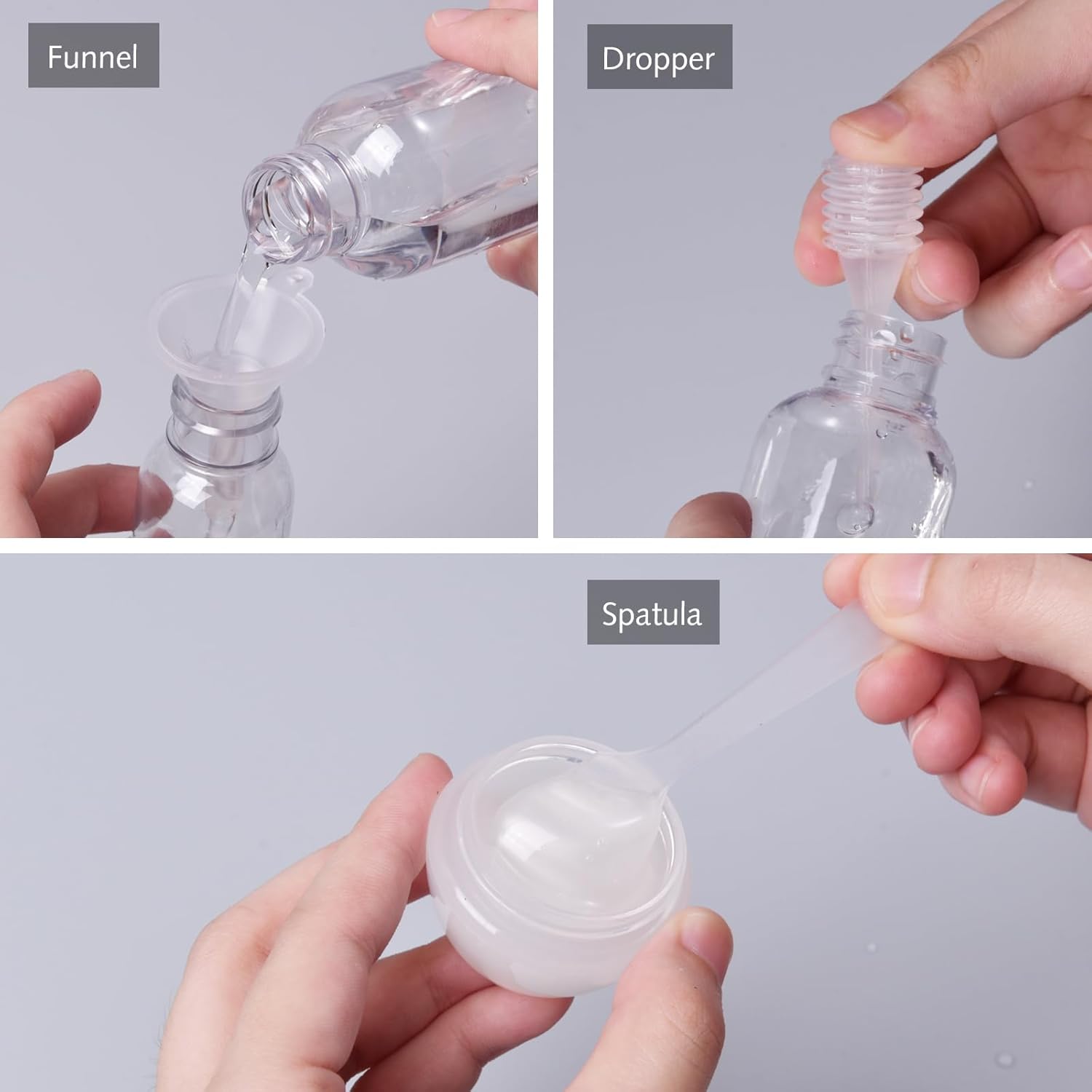 【Handy and Transportable】: Outfitted with a funnel, spatula, and pipette for straightforward filling, these light-weight bottles make packing and touring stress-free.