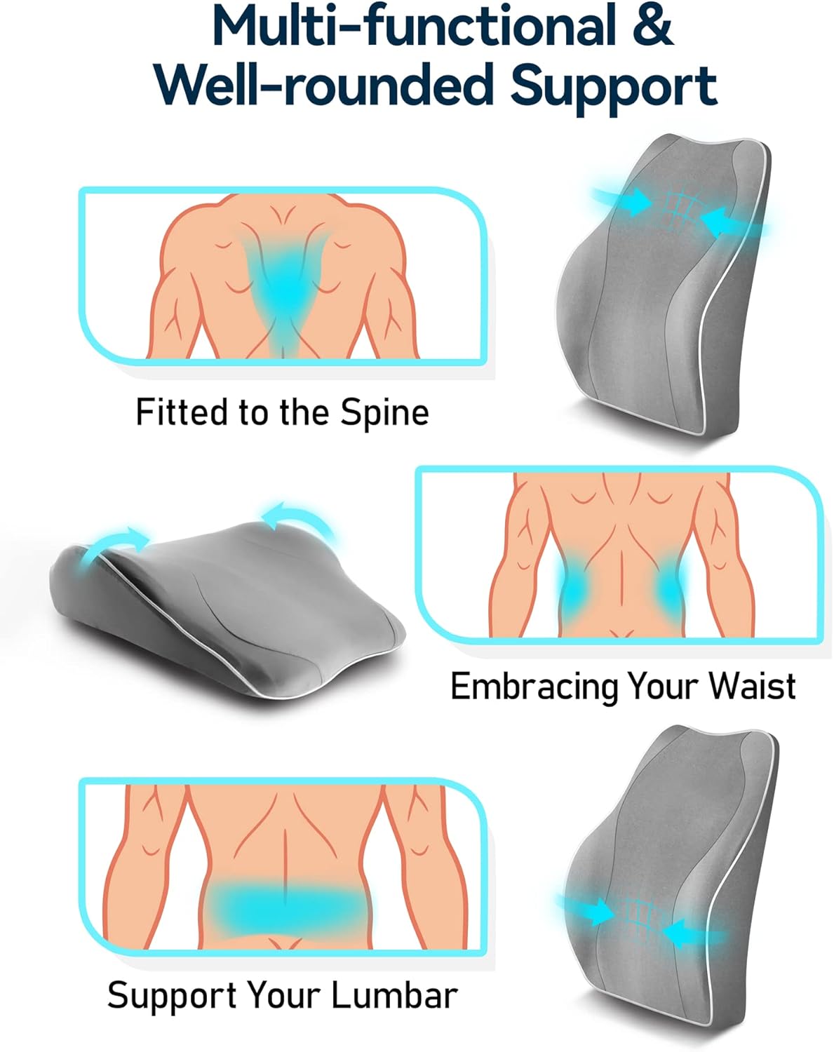 Premium Reminiscence Foam & Sturdy Supportive: Ergonomic Streamline molds with premium reminiscence foam, slow-rebound, sufficient softness however supportive again pillow and by no means flattens out, a correct firmness lumbar pillow embraces round your waist and help your again with snug expertise.