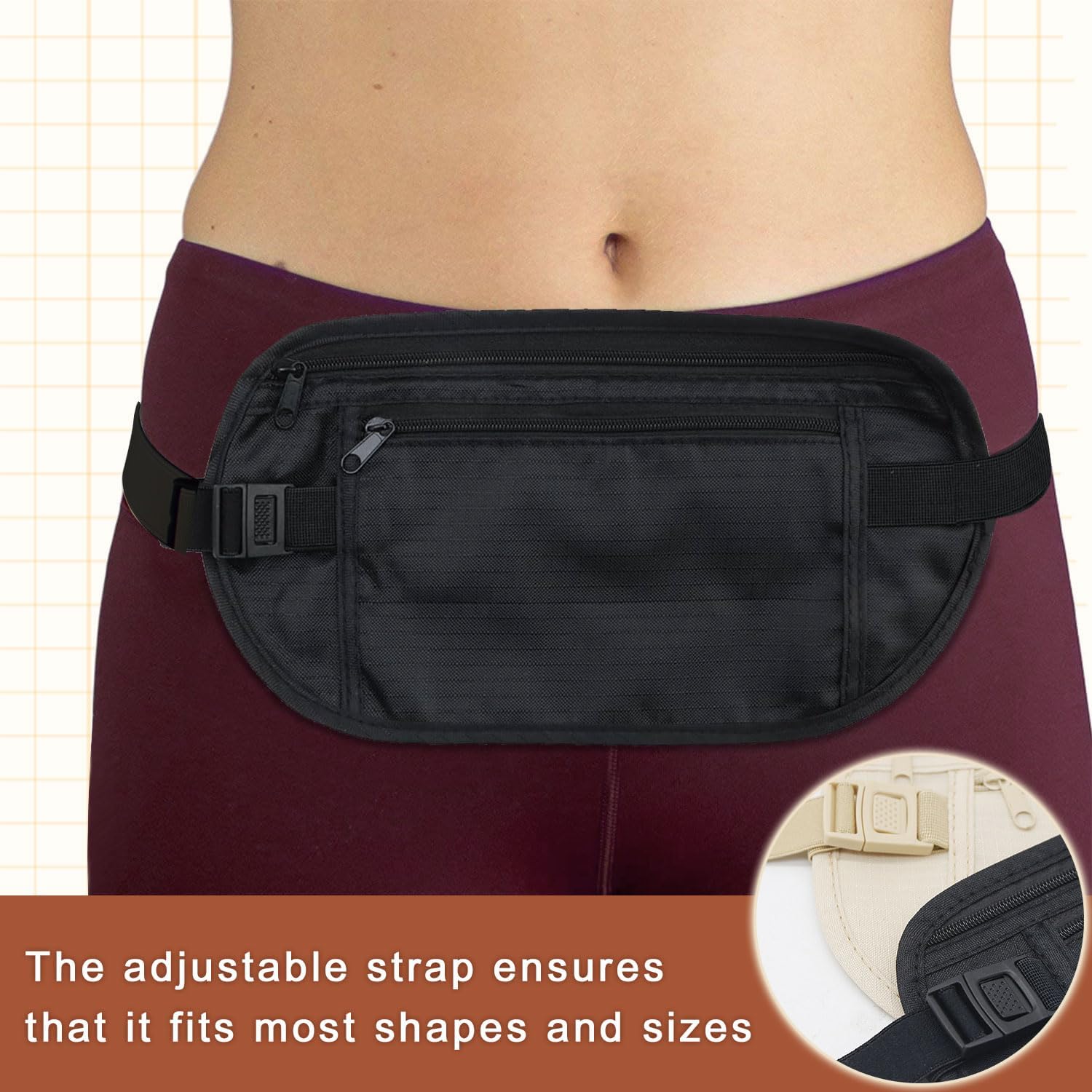 Double Pockets: This safe fanny pack includes a double pocket design that gives protected storage for money, playing cards, and different necessities. The zippers not solely provide cell anti-theft entry but additionally forestall objects from slipping out, making this journey cash belt essential for worry-free journeys