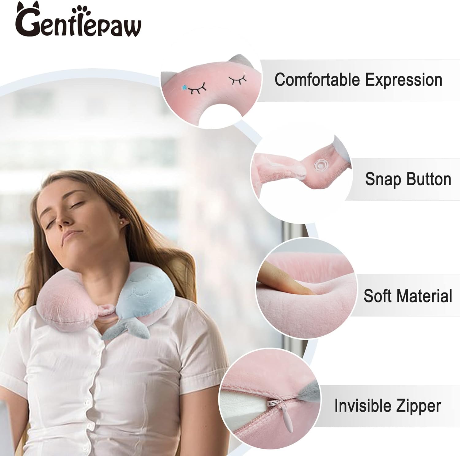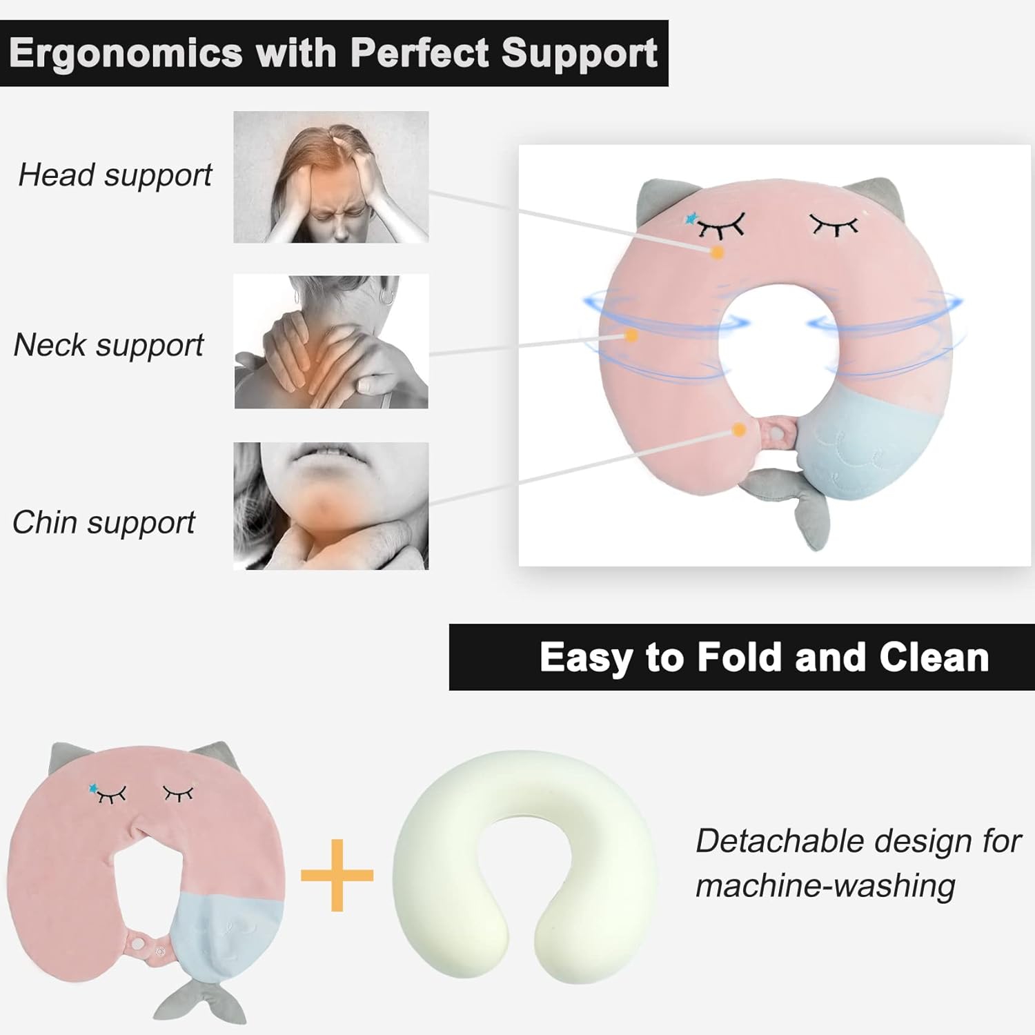 Travel Pillow – Soft Memory Foam Neck Pillow for Adults, Kids, Children, Convenient & Portable U Shaped Neck Pillows, Cute Animal Airplane pillow for Home, Office, Camping, Travelling, Sleeping (Pink)