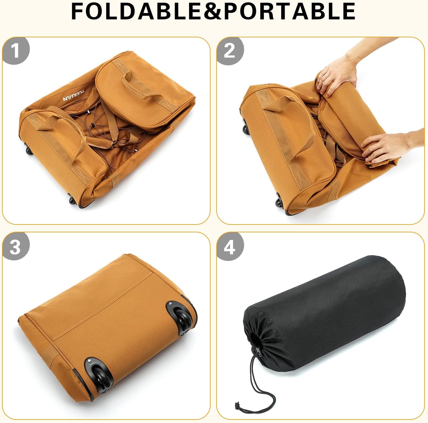 3 Methods to Carry: TUGUAN foldable duffel bag with wheels options three handles – a padded prime deal with for fast grabs, and two facet robust webbing handles for straightforward lifting. Select probably the most snug and handy choice in your wants.