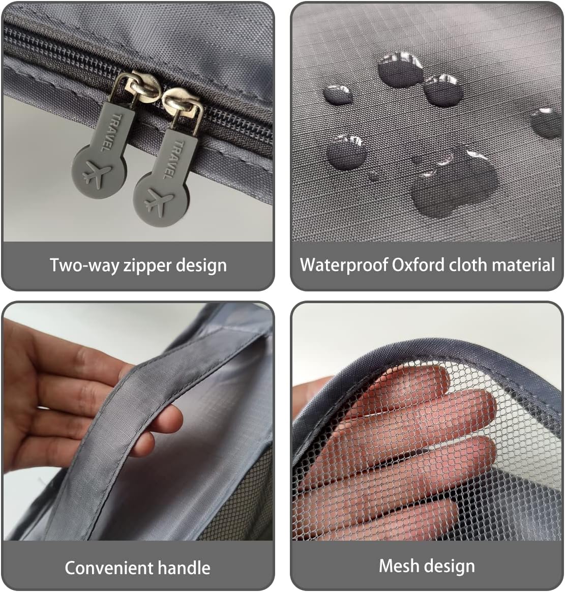 Intelligent Design: The packing dice within the journey storage bag set adopts a mesh design, which makes it simple to establish the contents of the bag, The 2-way zipper and strengthened deal with design make it very handy so that you can use and carry.
